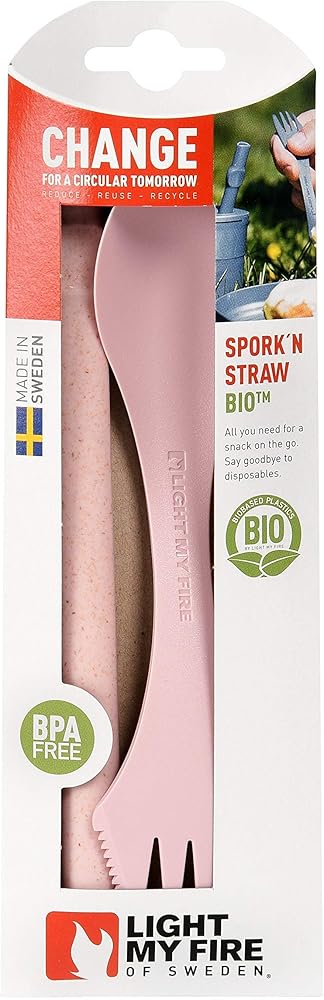 إن مجموعة لايت ماي فاير سبارك آند سترو الحيوية المصنوعة في السويد هي الخيار المستدام للوجبات أثناء التنقل. تصميم صغير الحجم يناسب المحفظة أو الحقيبة مما يجعل من السهل حملها معك. يستخدم وعاء ريسترو شكل بيضاوي لسهولة الإمساك بقطر كبير لسهولة التنظيف ولشرب السوائل الأكثر سمكا. إن منتجاتنا من سبورك أوريجينال عبارة عن مجموعة من الملاعق والشوك والسكاكين التي تجعل أدوات المائدة التي تُستعمل لمرة واحدة شيئاً من الماضي. كلا المنتجين يستخدمان البلاستيك الحيوي الخالي من البيسفينول ايه للاستخدام الآمن. بالإضافة إلى ذلك، فإن هذه المجموعة آمنة للاستخدام في الميكروويف وغسالة الأطباق.