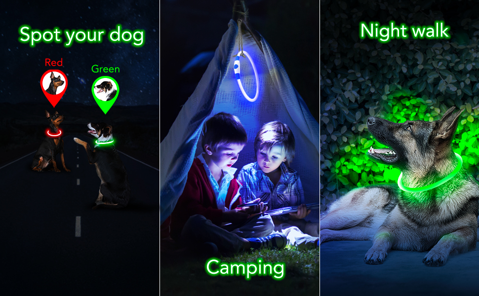 ⛱️معدات تخييم الكلاب من BESR - 3 أسباب - 1. يمكن أن يساعدك هذا الطوق على تحديد موقع كلبك وتتبعه في الظلام أثناء التخييم أو في الفناء الخلفي أو في التنزه سيرًا على الأقدام في المساء. يرجى جعله يرتدي ألوانًا مختلفة! 2. قم بإضاءة خيمتك و خلق جو عطلة سعيدة. 3. قم بإضاءة طريق طفلك عندما يدخل في الظلام. (ملاحظة: مقاوم للماء يوميًا، يعمل بشكل جيد في الأيام الممطرة، ولكن لا تدع الكلب يسبح لأكثر من 20 دقيقة.)