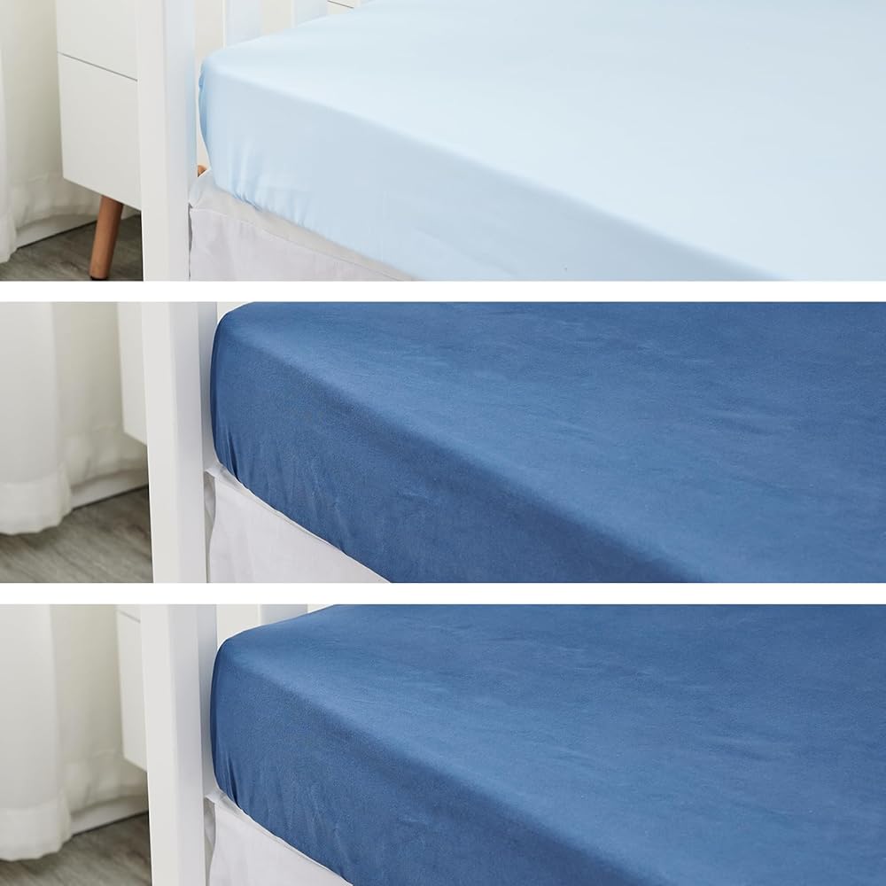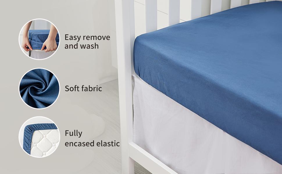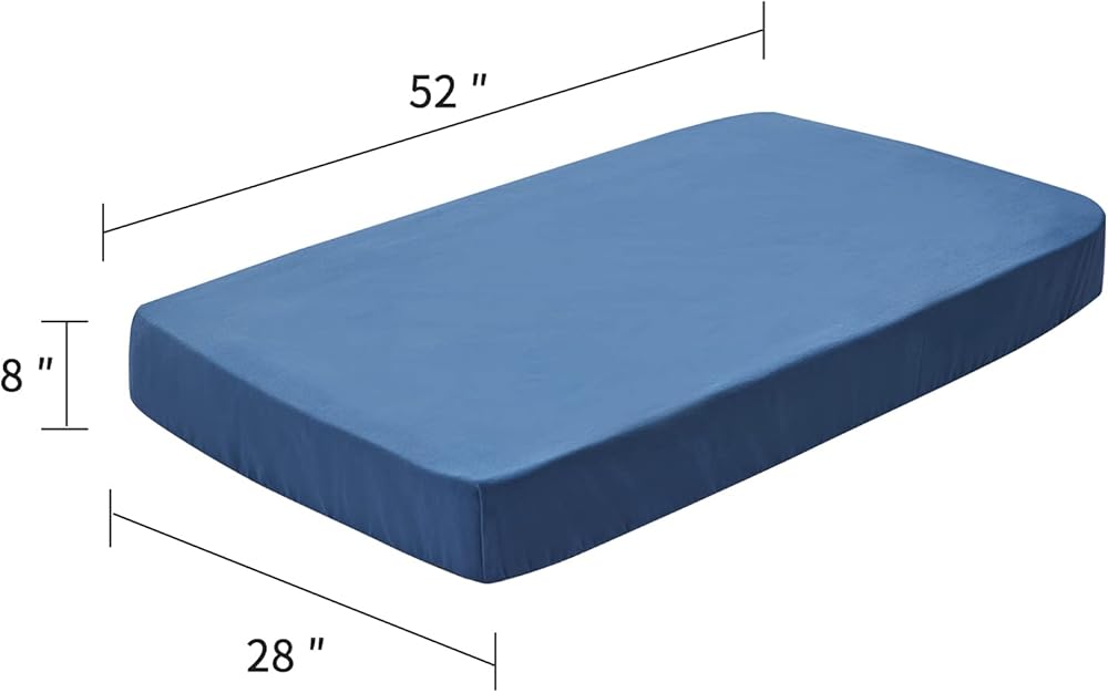 ملاءمة مثالية: بأبعاد 52 × 28 × 9 بوصة، تناسب ملاءات سرير الأطفال المصنوعة من الألياف الدقيقة معظم أسرّة الأطفال أو مراتب الأطفال القياسية. شريط مطاطي كامل حول 4 حواف يجعل الملاءات سهلة الاستخدام