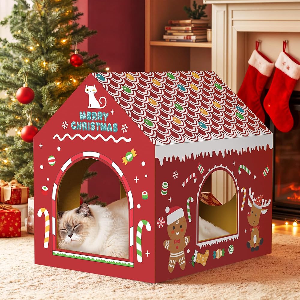 【😸هدية رائعة لعيد الميلاد】هذا بيت قطط لطيف بطابع عيد الميلاد، وبالتأكيد هدية عيد الميلاد لأصدقائك ذوي الفراء، ويمكن استخدامه أيضًا كديكور منزلي لطيف لعيد الميلاد.
