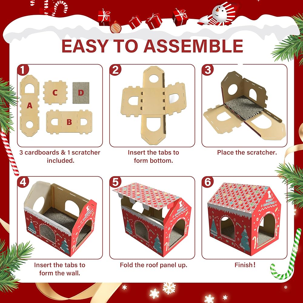 بيت القطط من الورق المقوى من ويسترن هوم مع خدش، بيوت قطط عيد الميلاد للقطط الداخلية (16.5 بوصة × 12 بوصة × 15 بوصة)، بيت لعب للخدش على شكل أرنب وقطط صغيرة لتزيين عيد الميلاد