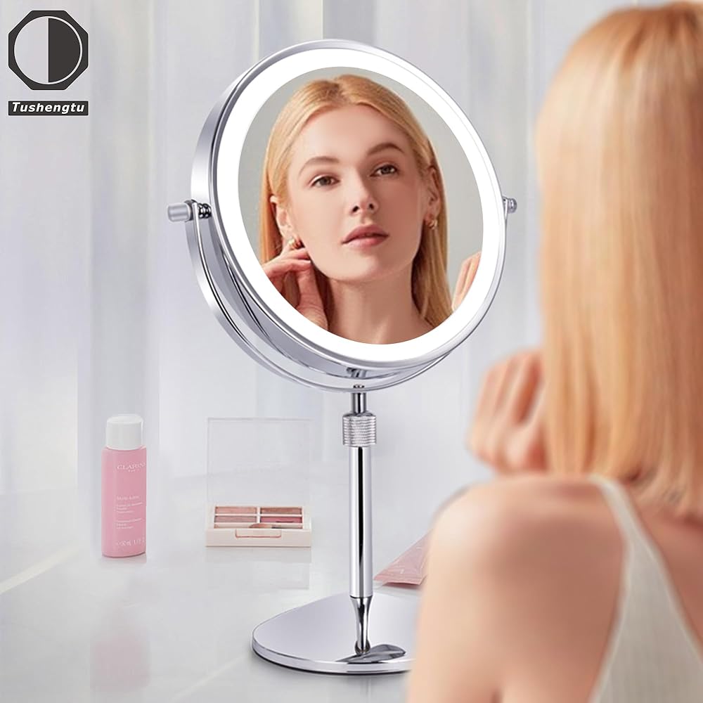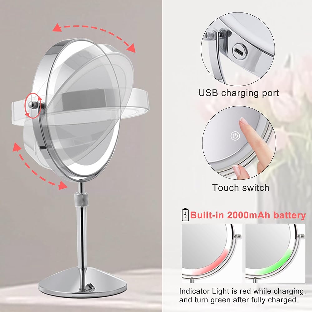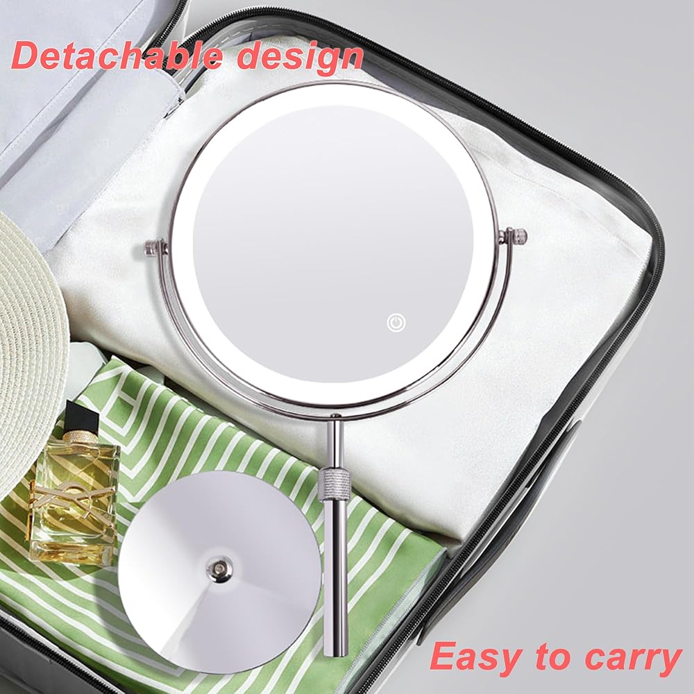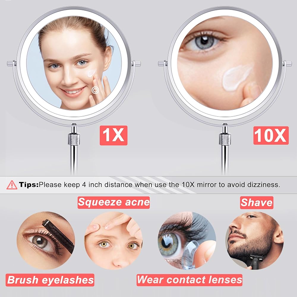 ✨مرآة مكبرة مع الضوء: مزيج من مرآة مستوية ومرآة مكبرة 10x، تصميم المرآة المزدوجة يسمح بأفضل زاوية رؤية. المرآة متصلة بالدعامة بمفصلات، مما يسمح لها بالدوران بحرية لأعلى ولأسفل 360 درجة. إنها مصنوعة بطريقة عصرية، عدسة مكبرة 10x بمسافة 4-6 بوصة