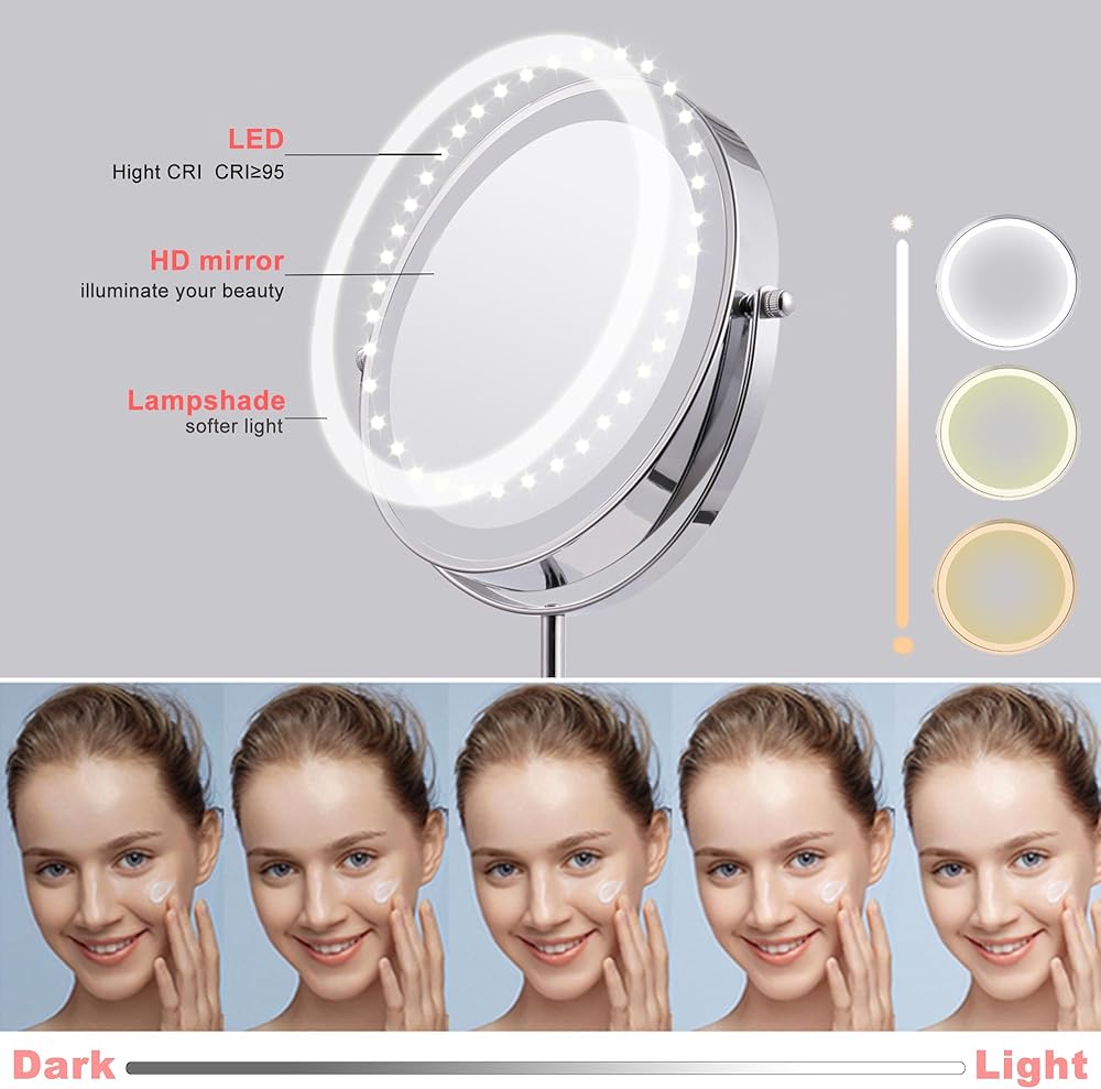 ✨ مرآة مكياج بإضاءة LED: مرآة مكياج مضيئة للمكتب، إضاءة LED عالية الجودة، إضاءة تصل إلى 800 لوكس، مؤشر تجسيد اللون أكثر من 95، توفر مصدر ضوء ثابت وناعم مضاد للوهج، وتستعيد لون البشرة والمكياج تحت ضوء الشمس. يمكنه التبديل بين درجات حرارة اللون 3000K/4000K/6000K بمفتاح واحد وتعتيم للعثور على أفضل سطوع.