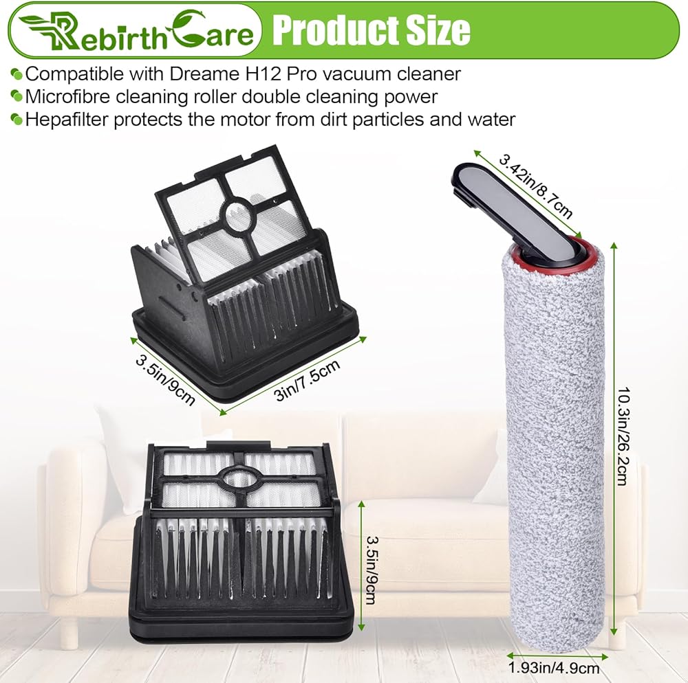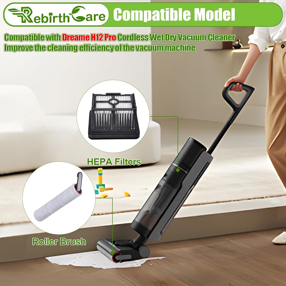 ريبيرث مجموعة ملحقات للمكنسة الكهربائية دريم H12 برو، 2 بكرة فرشاة + 2 فلتر هيبا