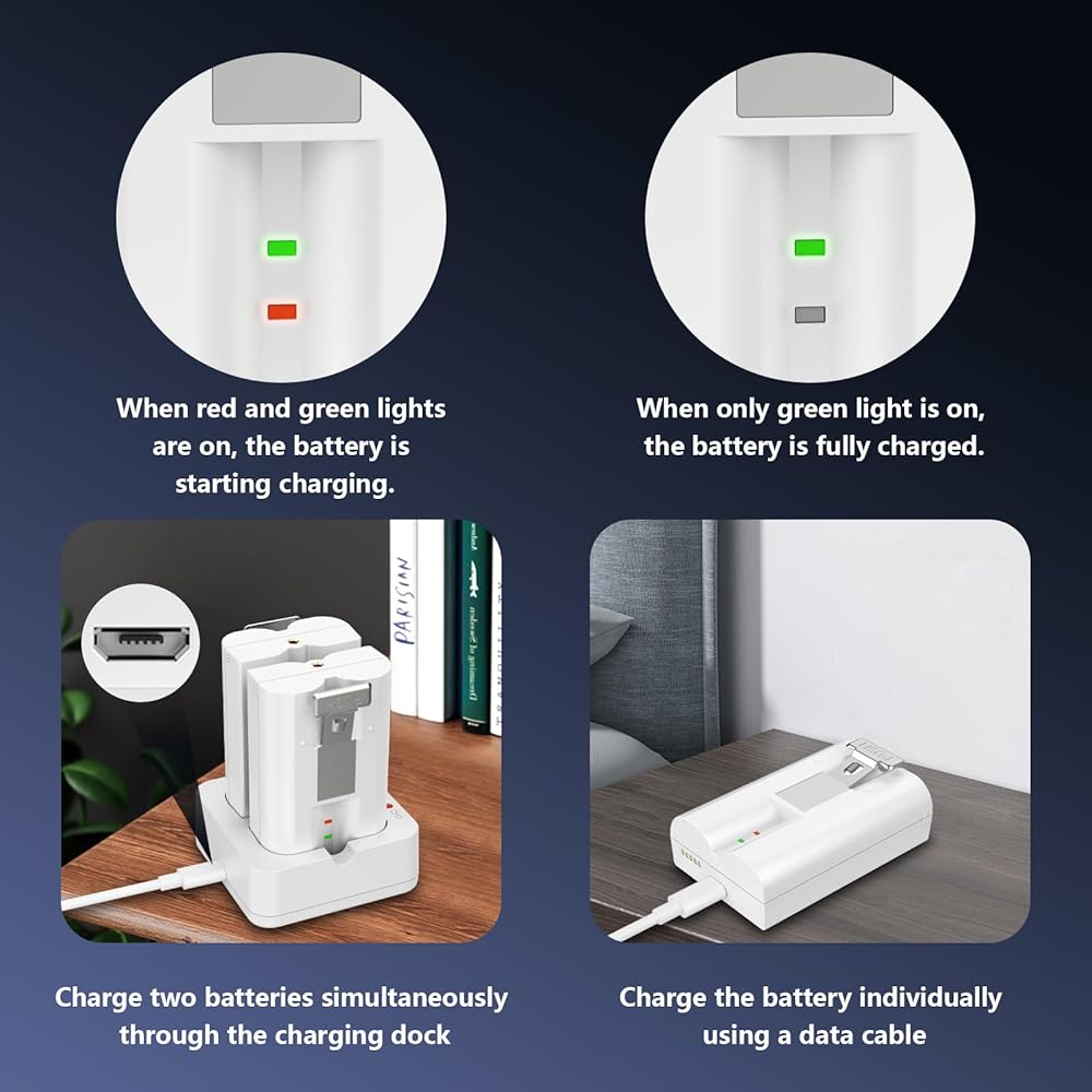 • 【ما تحصل عليه: عبوتان * بطاريات بديلة بقدرة 6040 مللي أمبير في الساعة، 1 * قاعدة شحن مزدوجة، 1 * كابل USB (50 سم)، ضمان الشركة المصنعة لمدة 12 شهرًا واسترداد أموالك مجانًا خلال 60 يومًا، وخدمة عملاء على مدار 24 ساعة.