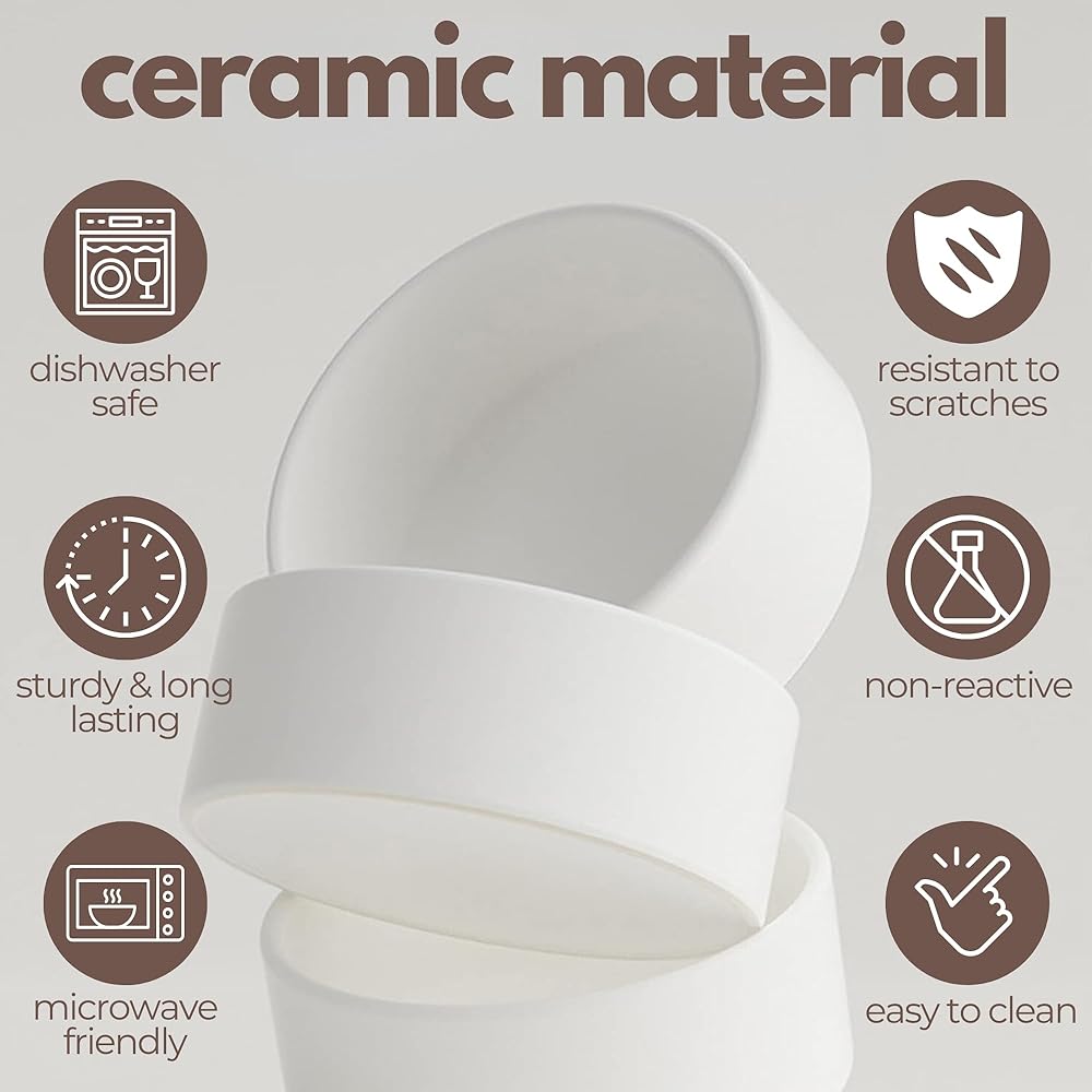 • صيانة سهلة: مجموعة أوعية الحيوانات الأليفة الخزفية الخاصة بنا آمنة للغسل في غسالة الأطباق، مما يجعل التنظيف سهلاً ويسمح لك بقضاء وقت أقل في الأعمال المنزلية ولحظات أكثر جودة مع حيوانك الأليف.