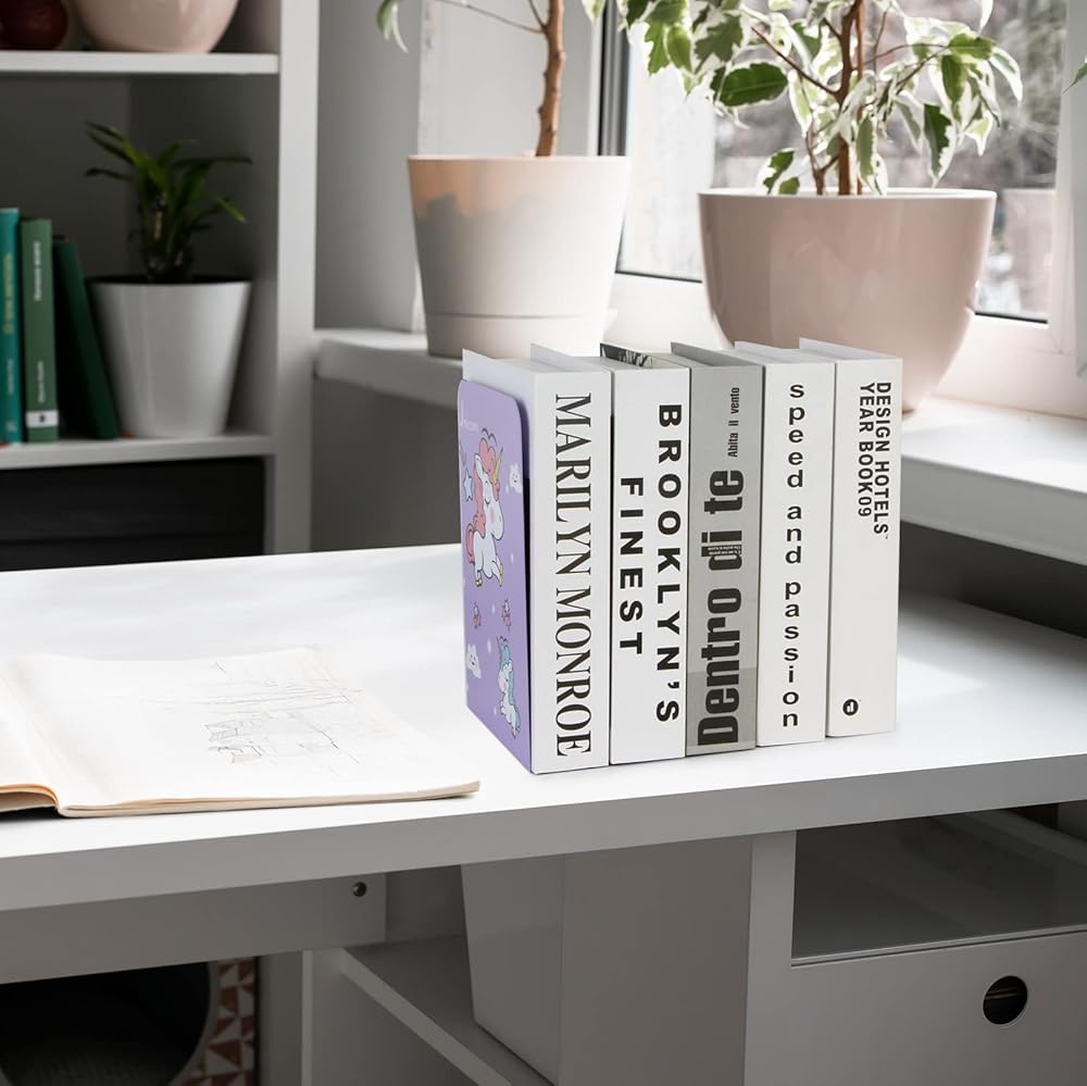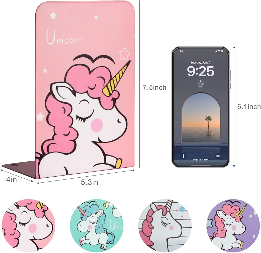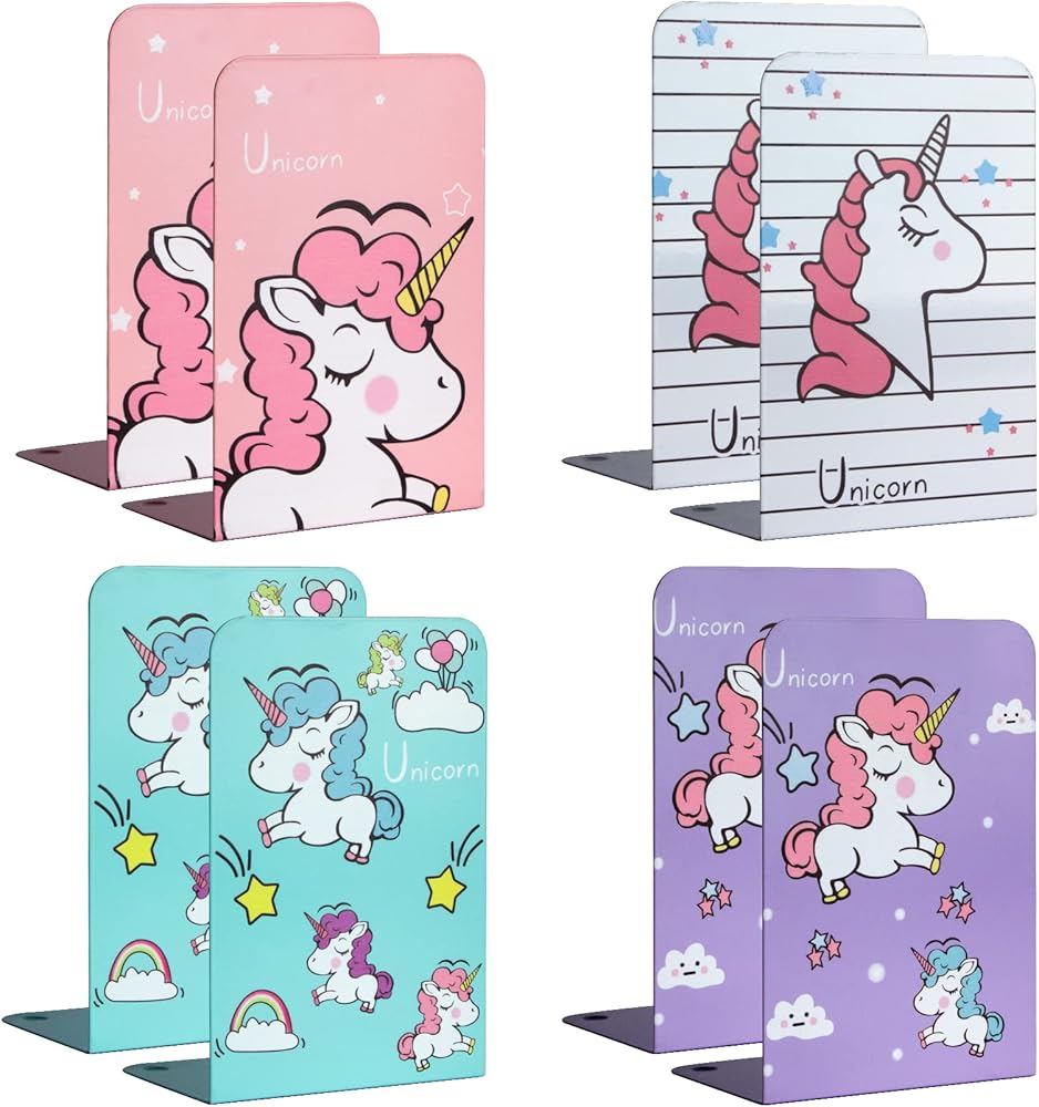 8 قطع من دفاتر zyners، دفاتر معدنية للأرفف، شديدة التحمل غير قابلة للانزلاق، نهايات كتب لطيفة على شكل وحيد القرن للأطفال والفتيات والأطفال (5.3 × 4 × 7.5 بوصة)