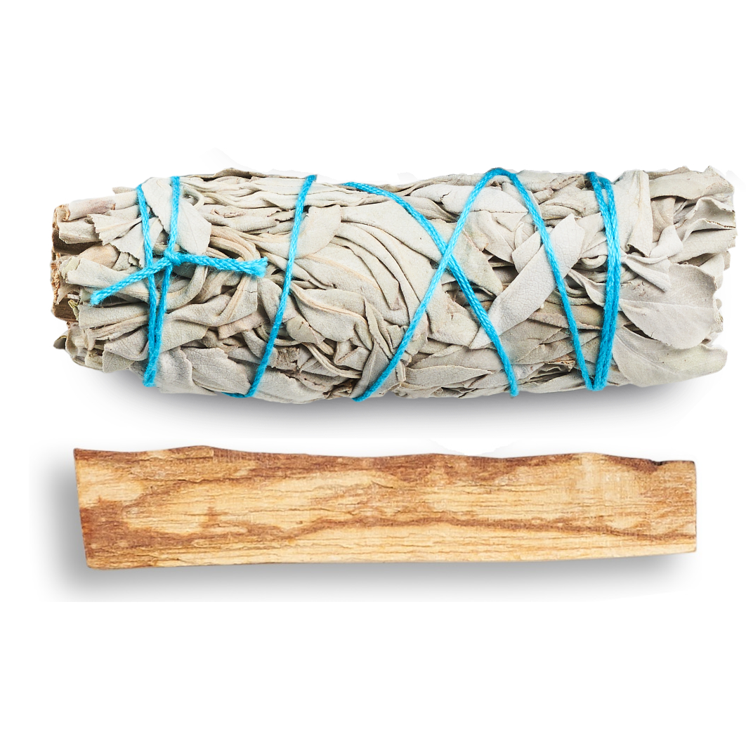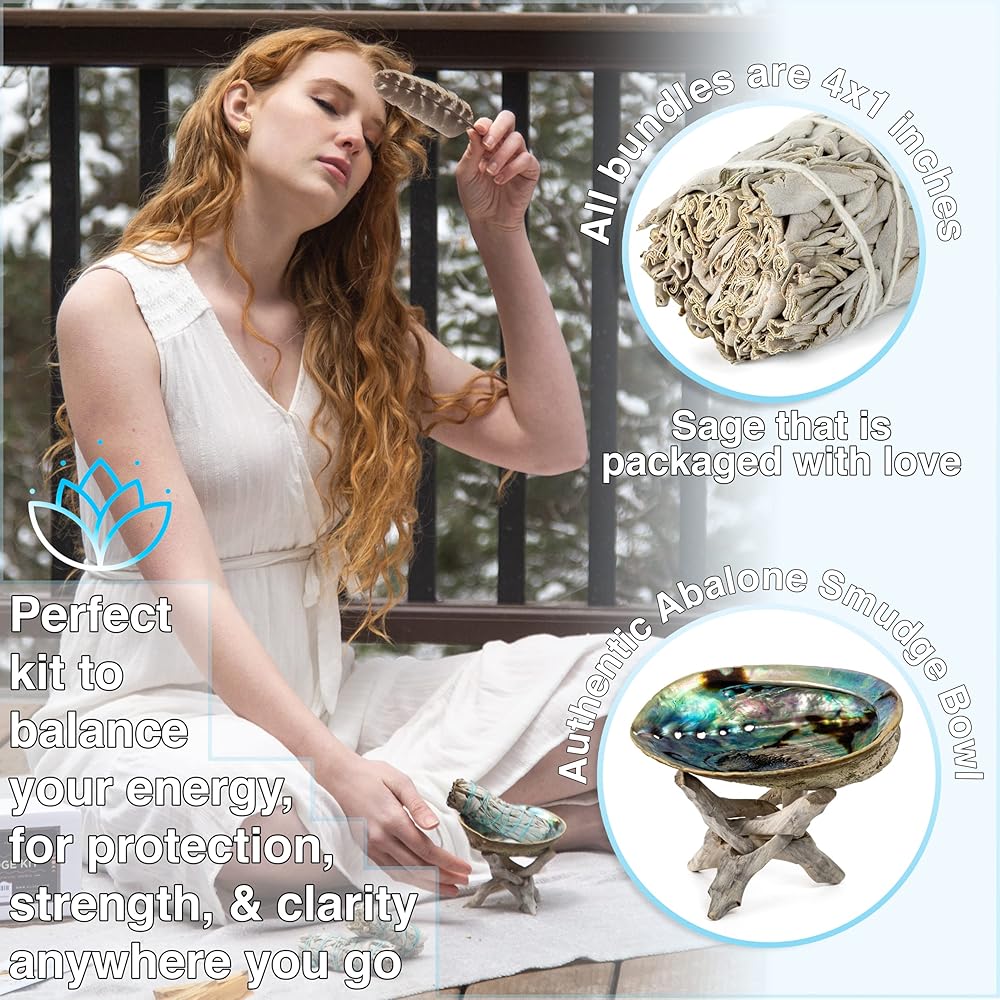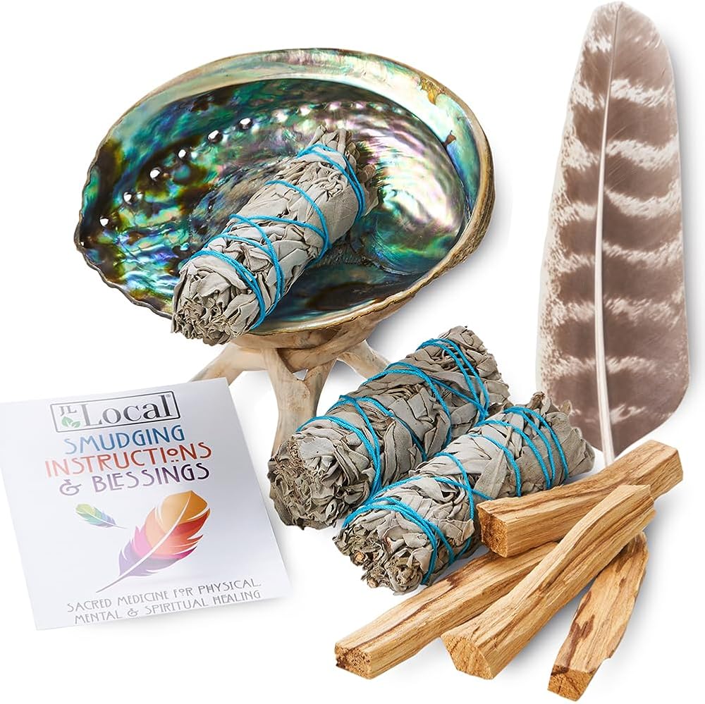 مجموعة التلطيخ - المريمية البيضاء، بالو سانتو، صدف أذن البحر، ريش ملطخ، سلسلة مفاتيح كوكوبيلي! الشفاء والتنقية والتأمل والبخور (اساسيات والمزيد)