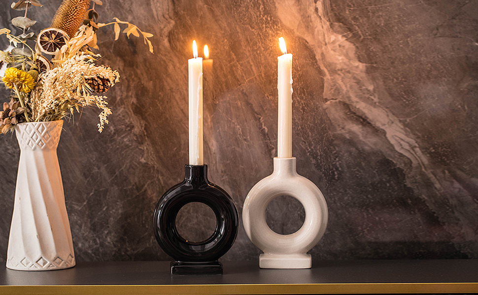 🌷【التصنيع】 - يتم إطلاق حامل الشموع المصنوع من السيراميك الأبيض على درجة حرارة 1700 درجة، وهو قطعة فنية فريدة من نوعها.. يتميز جسم الزجاجة الخاص بحامل الشموع بملمس بلوري عمودي، والجزء السفلي أملس، والقدمين. مستقرة، ولا تؤذي سطح المكتب.. مريحة عند اللمس على السطح بأكمله