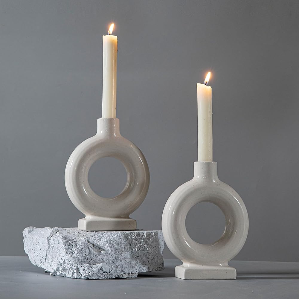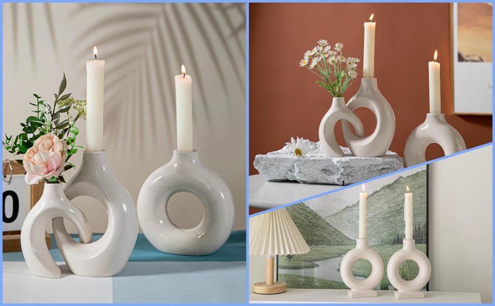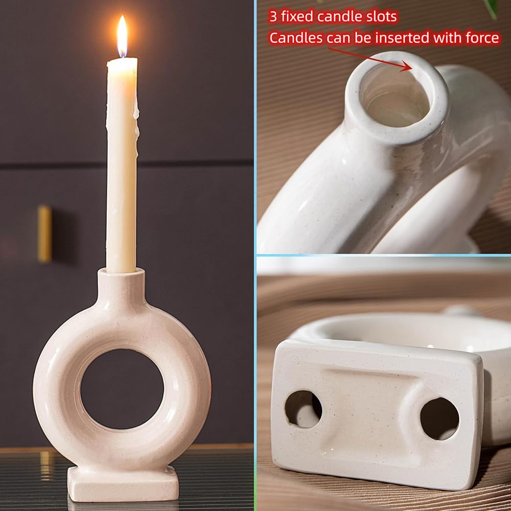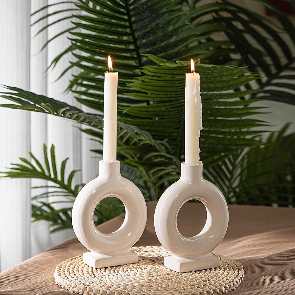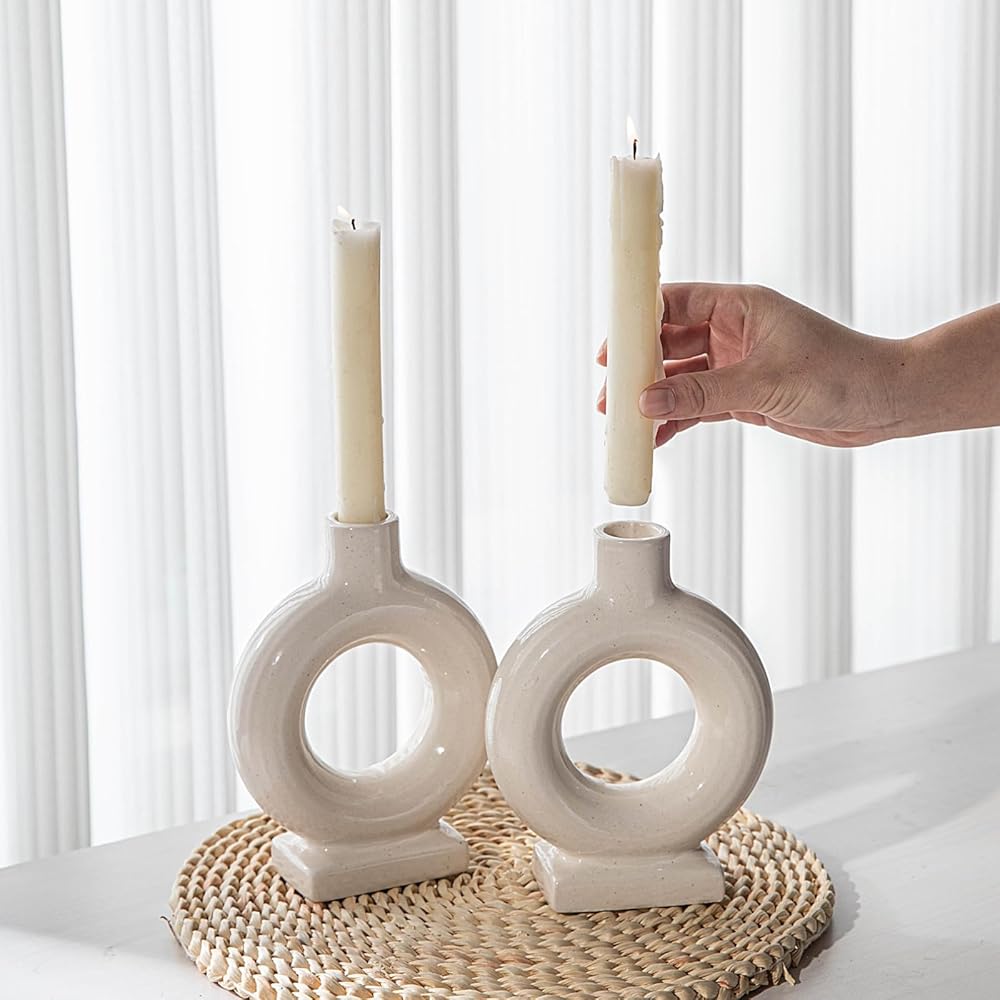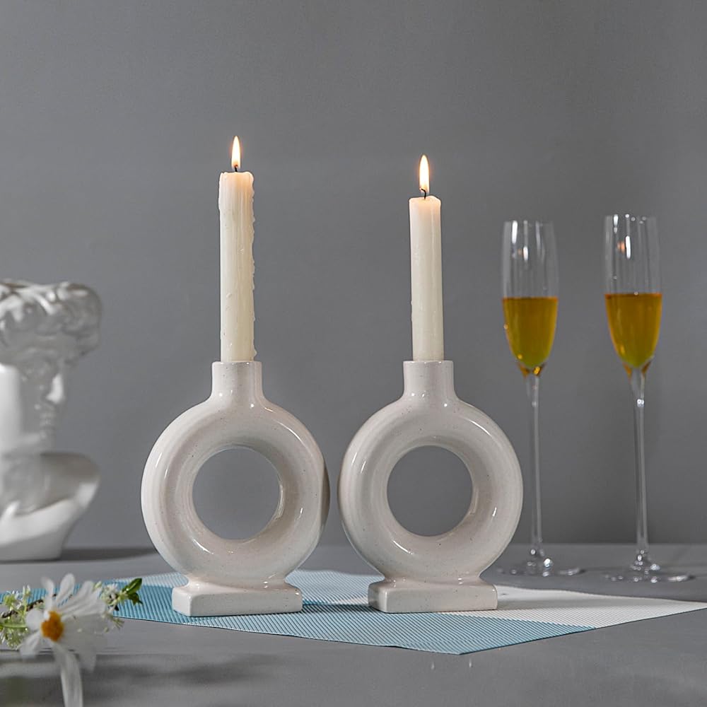 🌷【عبوة الحجم】- 2 حامل شموع مصنوع يدويًا باللون الأبيض الفاتح غير اللامع، الحجم (عرض جسم الزجاجة 5.3 بوصة × الارتفاع 6.8 بوصة × الارتفاع، t 3.8 بوصة) القطر الداخلي للفتحة 0.9 بوصة، مناسب لمختلف العلامات التجارية للشموع المدببة