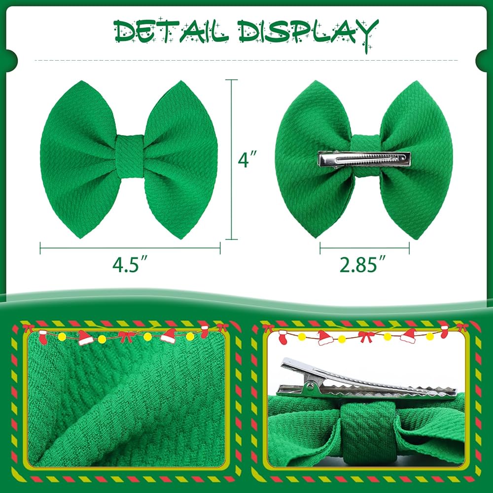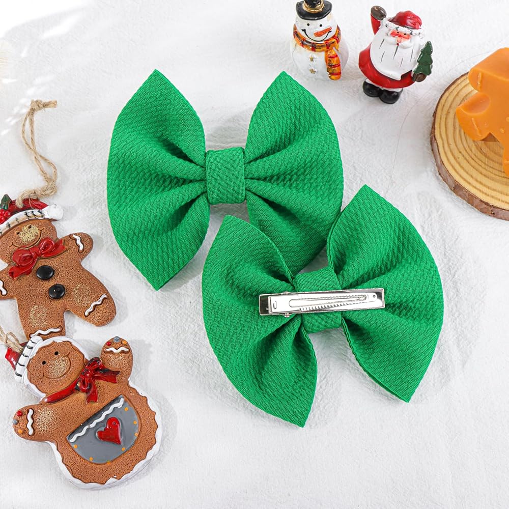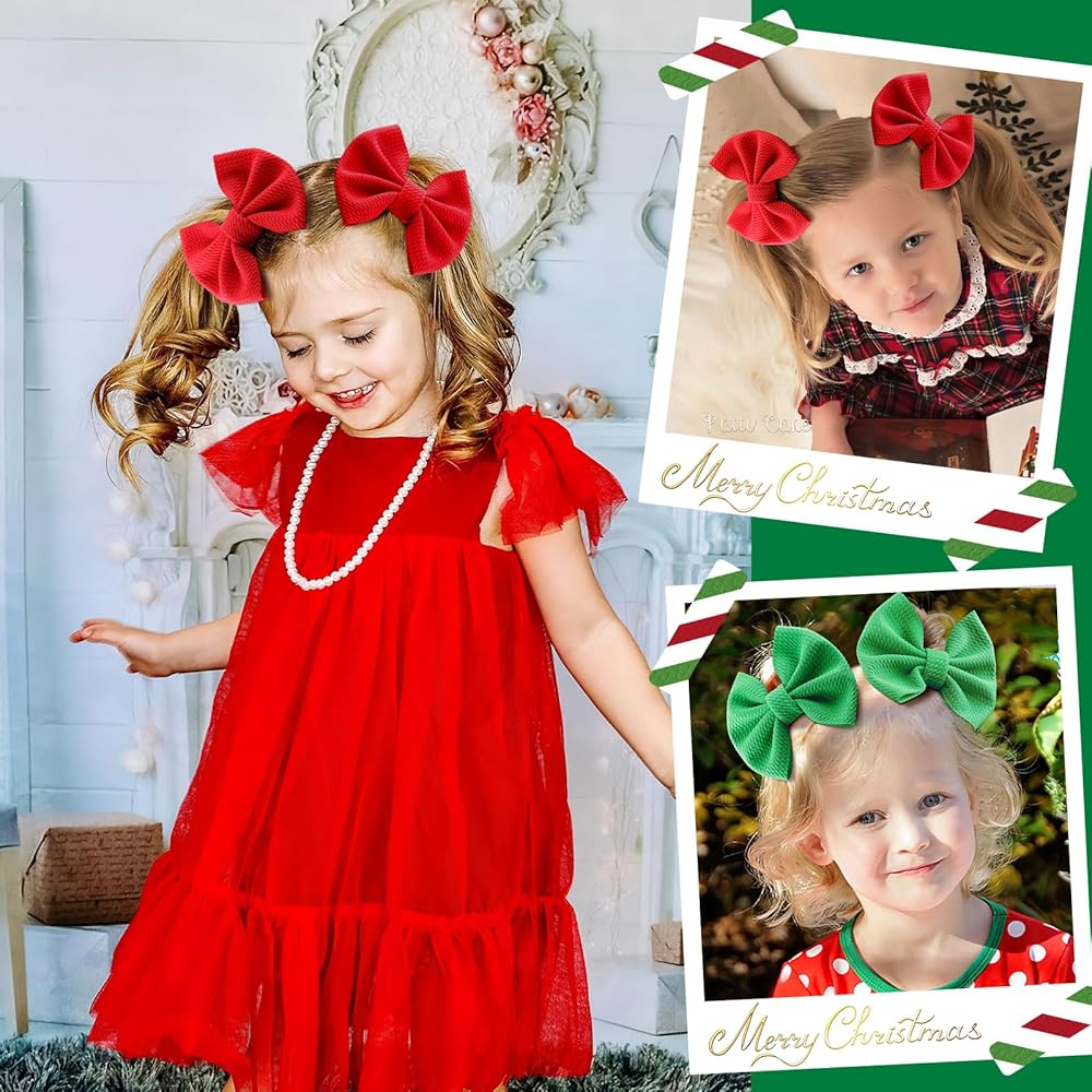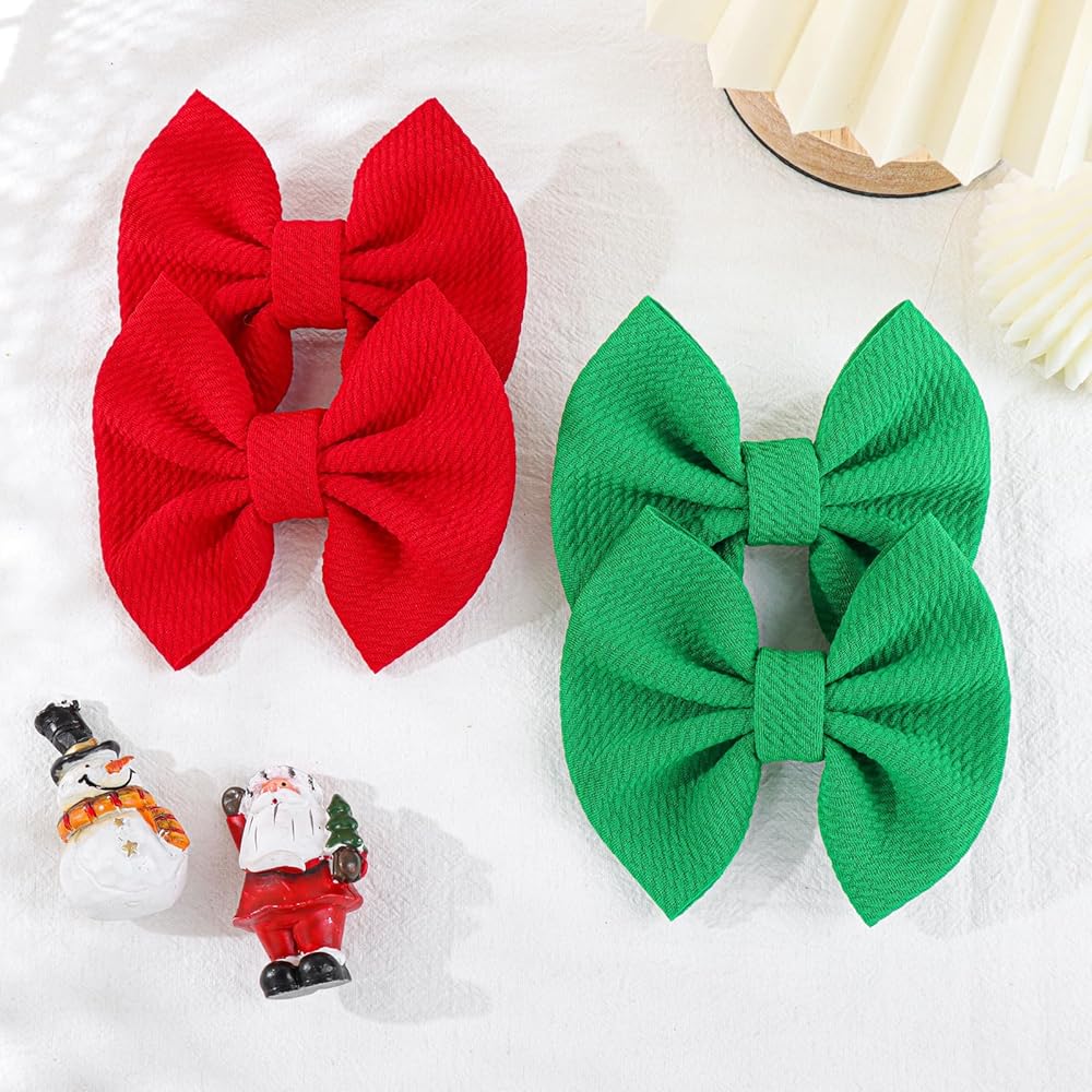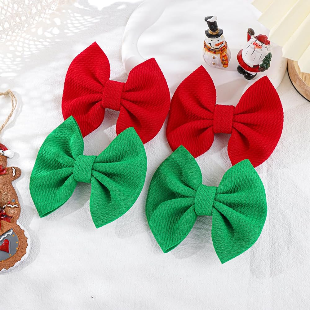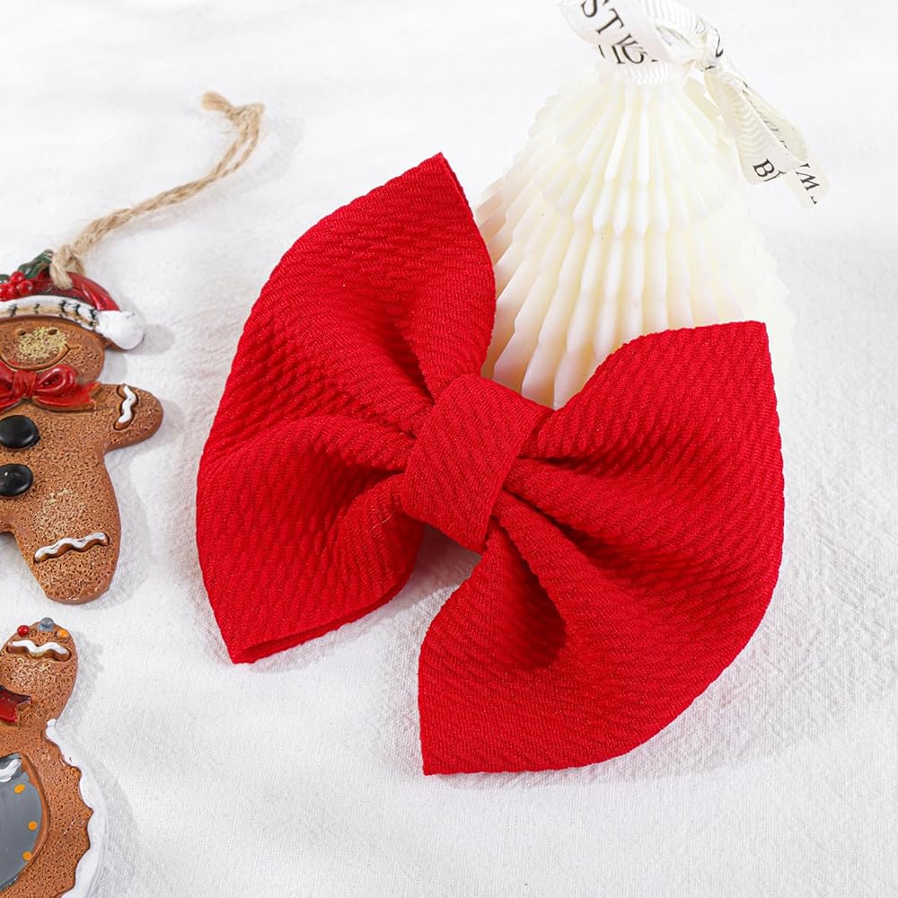 YanJie 4.5 "مشابك شعر عيد الميلاد للأطفال، دبابيس شعر حمراء للأطفال، دبابيس شعر تمساح، مشابك أقواس مصنوعة يدويًا، إكسسوارات شعر للأطفال الصغار والبنات والرضع والأطفال الصغار