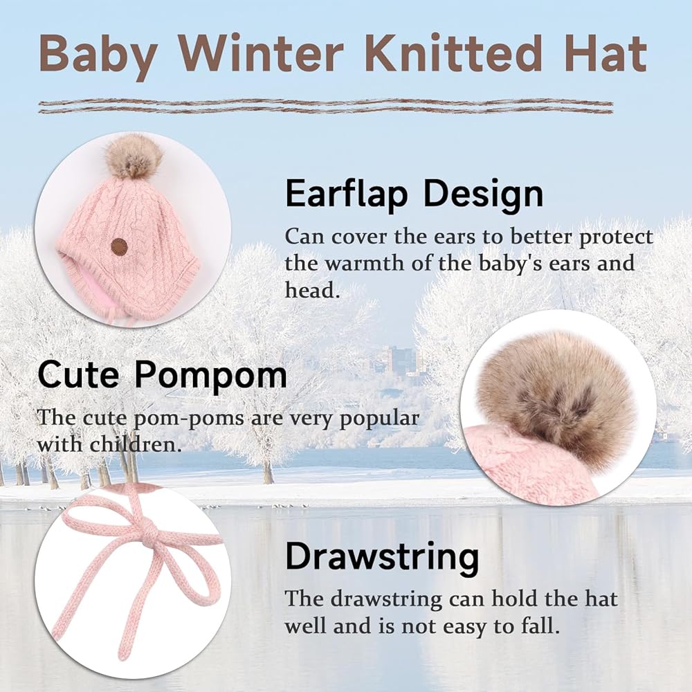 • قبعة شتوية رائعة للأطفال: قبعة الأطفال الصغار لدينا مصممة خصيصًا للرضع. لا تحافظ على دفء ودفء الطفل الرضيع فحسب، بل ستبدو قبعة الشتاء اللطيفة أيضًا رائعة جدًا، وهي إكسسوار شتوي جيد وأيضًا قبعة متينة وعالية الجودة وأسلوب بسيط للارتداء اليومي.