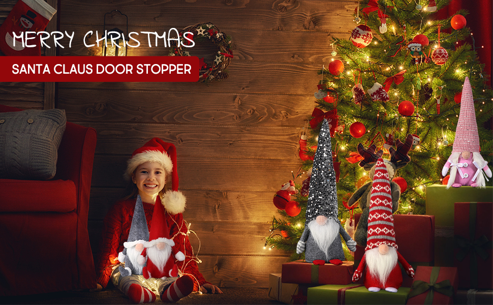 • سدادة باب عيد الميلاد: يمكن وضع سدادة الباب اللطيفة على شكل سانتا كلوز بين الباب والجدار لتجنب الاصطدام بالحائط، ويمكن أن تبقي الباب مفتوحًا دون أن تعيق طريقك، بينما تزين منزلك، مما يجعل منزلك أو مكان عملك دافئًا وجميلاً. إنه سهل الاستخدام للغاية، فقط ضعه أمام الباب.