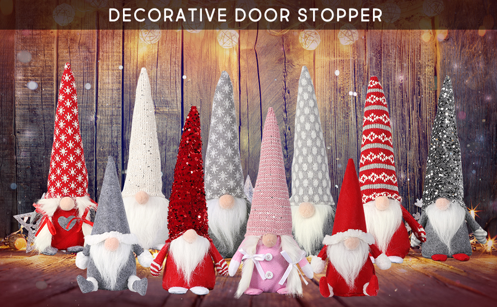 • تصميم رائع: سدادات الأبواب المزخرفة لعيد الميلاد مصممة بأنماط وألوان مختلفة، وقبعة طويلة مدببة، ولحية بيضاء منفوشة، وأنف لطيف وأذرع مفعمة بالحيوية، مجتمعة لتشكيل سدادة الباب الجميلة هذه. إنها ليست فقط سدادة باب مزخرفة، ولكن أيضًا زينة عيد الميلاد لديكور المنزل، أضف متعة عيد الميلاد إلى منزلك.