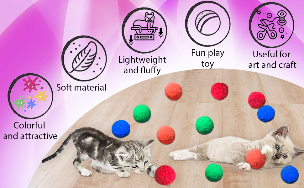 ✔ KEEPS KITTENS HAPPY AND BUSY --- Nothing's more adorable - or destructive - than a kitten! That cute ball of fur can turn from a helpless mewer to a foot-attacking ninja in the blink of an eye! Your only hope to save your toes and clothes is Meric's kitty toys. Kittens love our toys because they engage their hunting/play instincts and Meric cat pompom toys are soft on your kitten's paws.