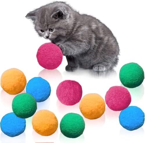 Meric Pompom Furry Cat Toy Balls, Lots of Toys for Lots of Fun, Get Your Flabby Tabby Moving, Keep Kittens from Shredding Books, Clothes, and Toes, Kitties Love to Fetch, Soft On Paws, 12 Toys