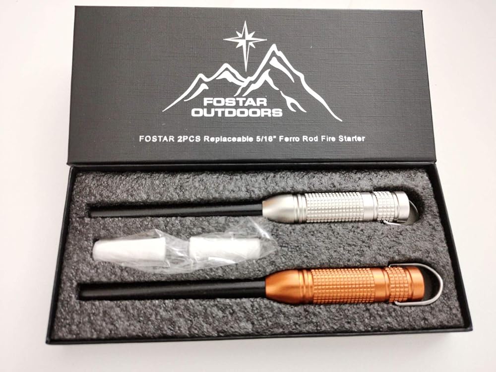 قطعتان من فوستار قابلة للاستبدال 5/40.64 سم برأس حديدي مع بوصلة، كبسولة تخزين، قضيبان ماغنيسيوم فولاذ، (لون برتقالي وصحراوي)