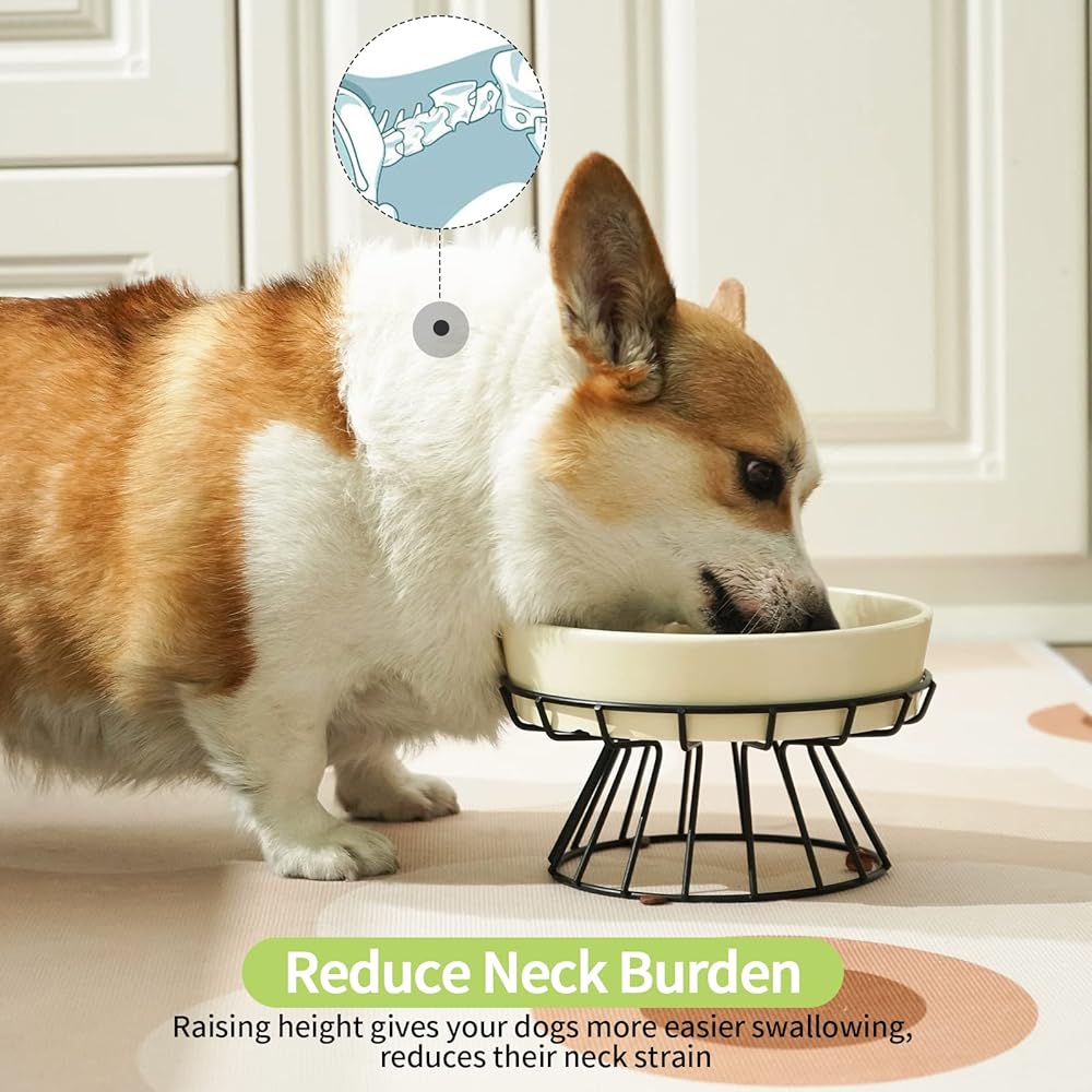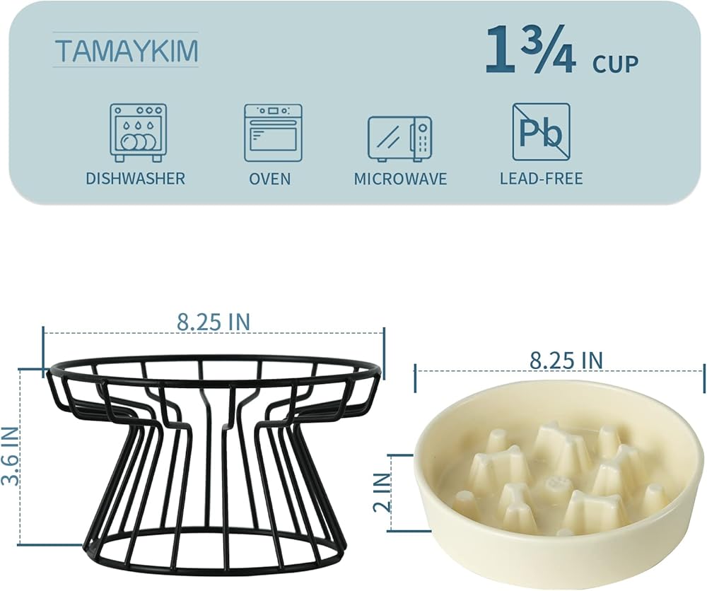 【حامل معدني】- قطر 8.25 بوصة × ارتفاع 3.6 بوصة. يمكنك استخدام الأوعية بدون الحامل أيضًا. امنح حيواناتك الأليفة أقصى درجات الراحة في أوقات الوجبات من خلال مجموعة TAMAYKIM Raised Dog Bowl.