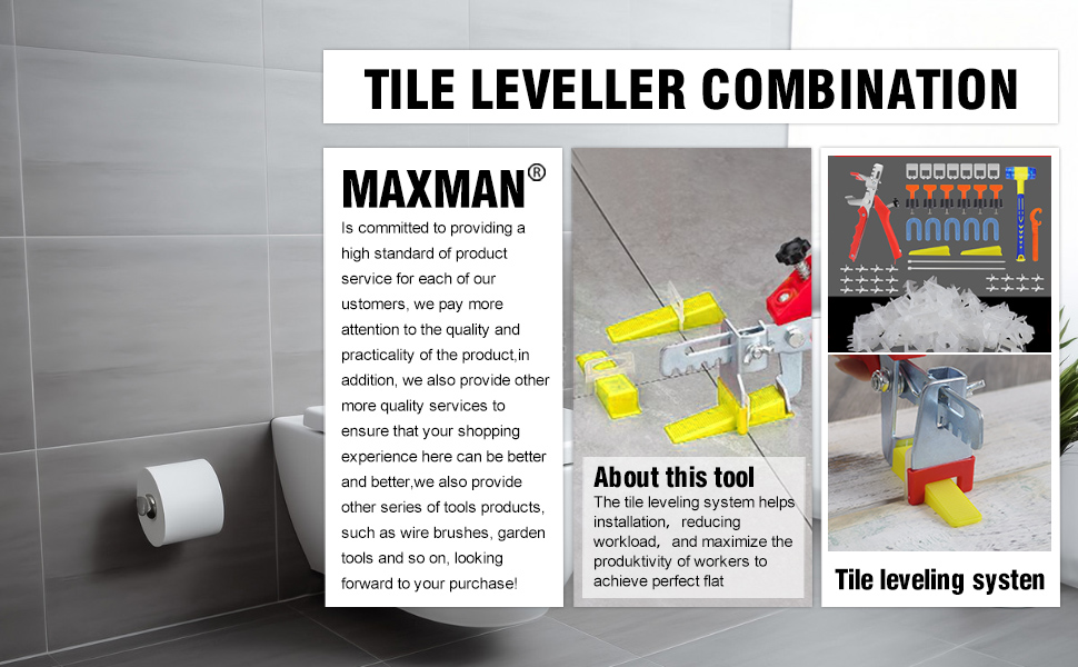 【فعال وموفر للجهد】يستخدم نظام تسوية البلاط هذا لوضع بلاط مرن أو كبير الحجم أو شديد التحمل أو منخفض السمك بشكل صحيح، مما يساعدك على زيادة سرعة التبليط، والتسوية بسرعة وسهولة، مما يوفر الوقت والجهد.