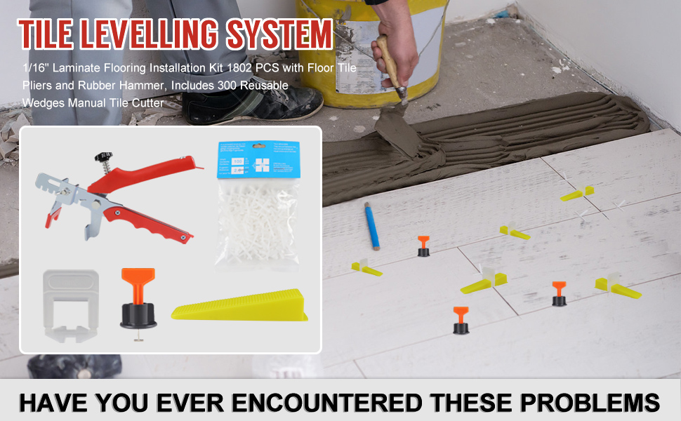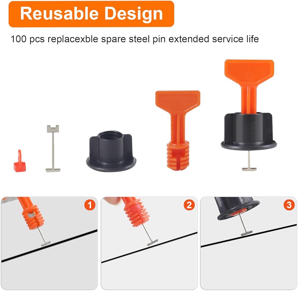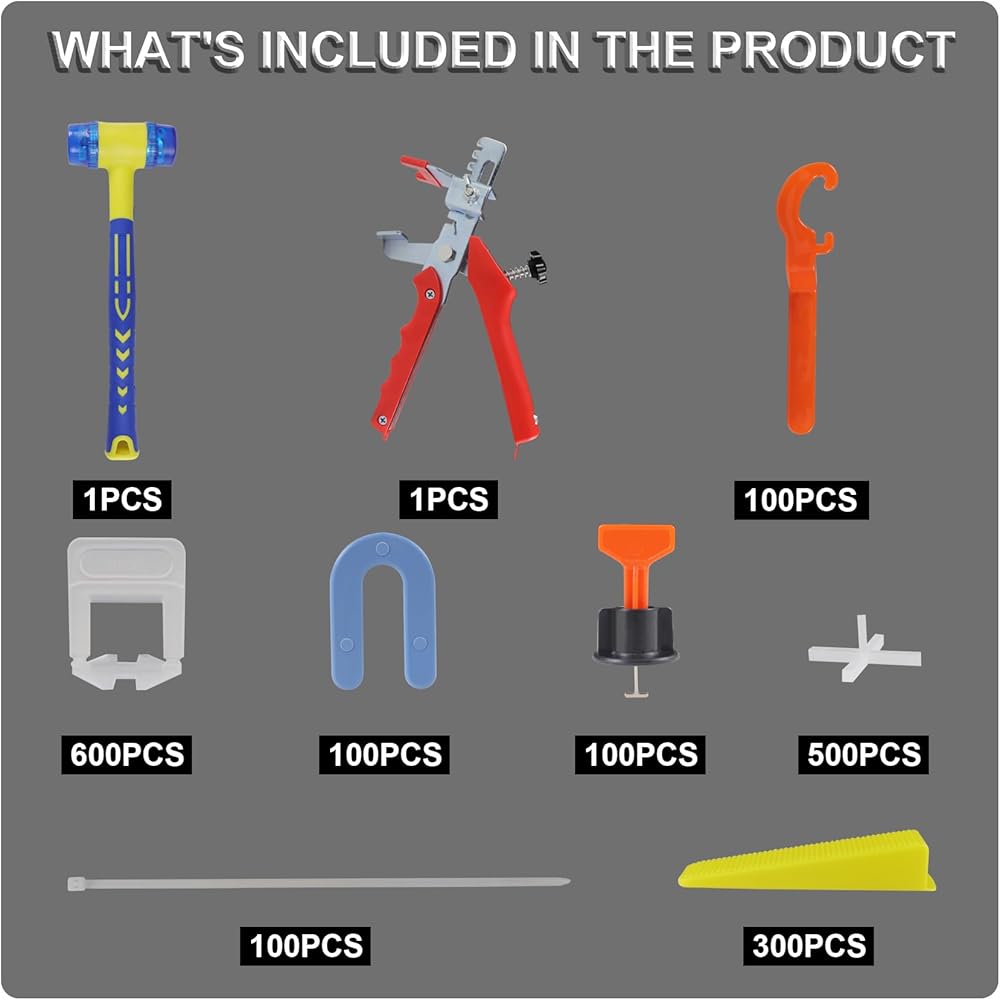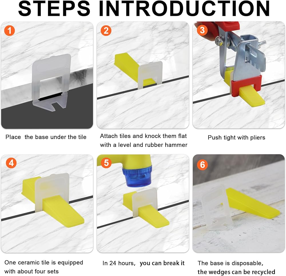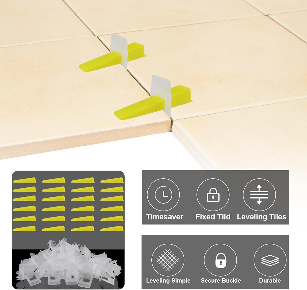 【مجموعة نظام تسوية البلاط】تأتي مع 1000 مشبك فاصل للبلاط، 200 إسفين بلاط قابل لإعادة الاستخدام، 1 مشبك بلاط و1 مطرقة مطاطية لتلبية جميع احتياجاتك.