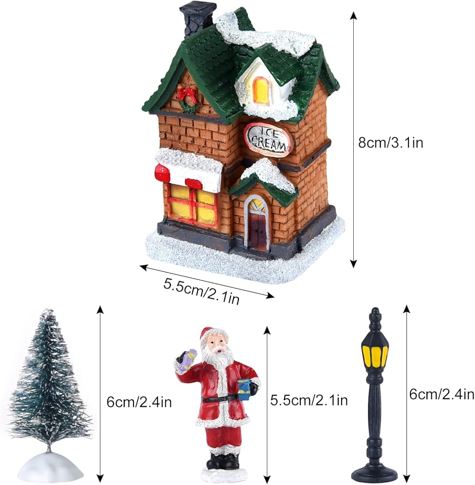 منازل قرية الكريسماس هي هدية مثالية للكريسماس للأطفال والأصدقاء والعائلات. يمكنك إنشاء حديقة الخيالية الخاصة بك أو بيت الدمى أو المناظر الطبيعية الصغيرة. ديكور رائع للكريسماس في الأماكن المغلقة