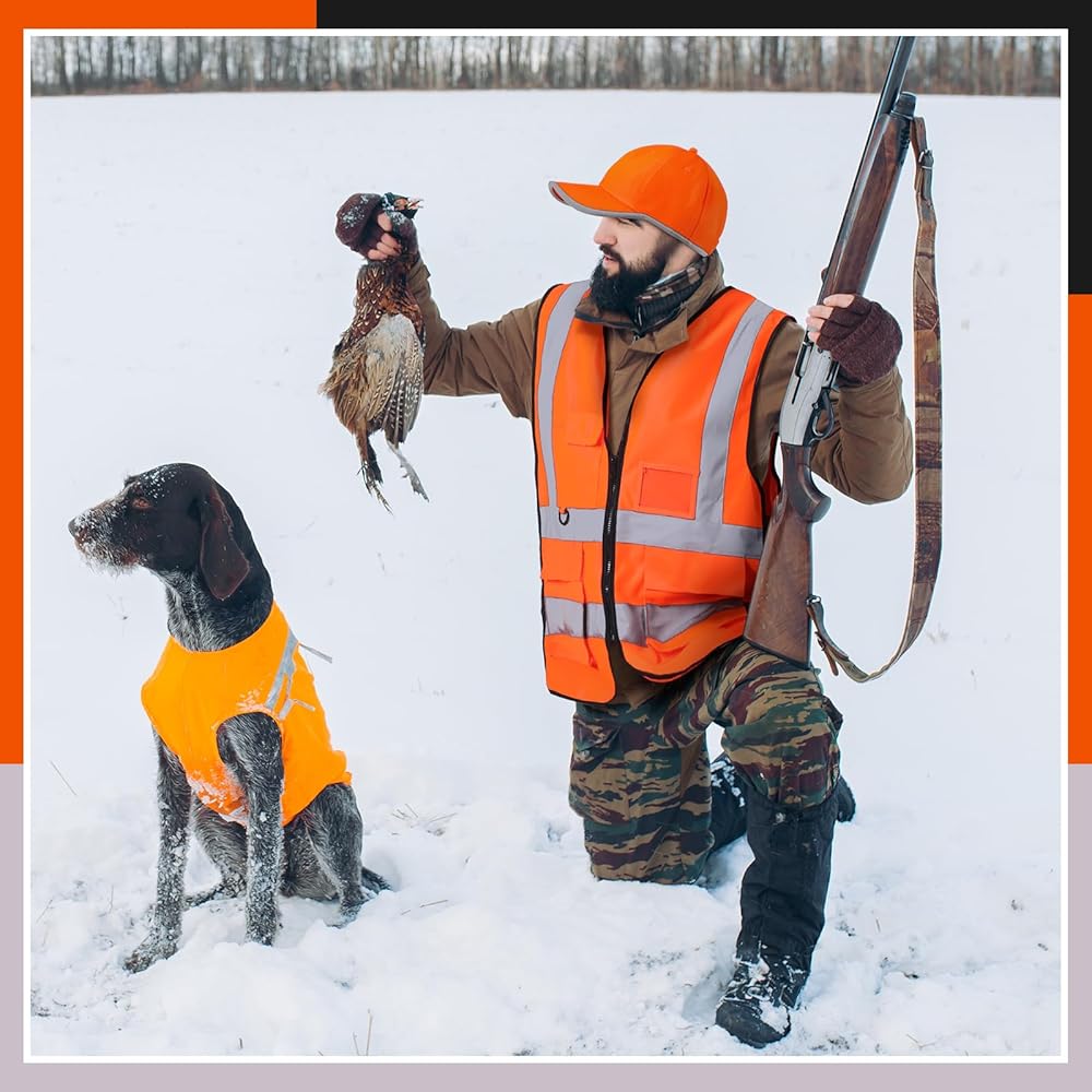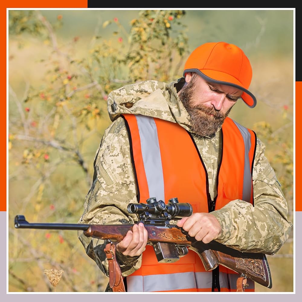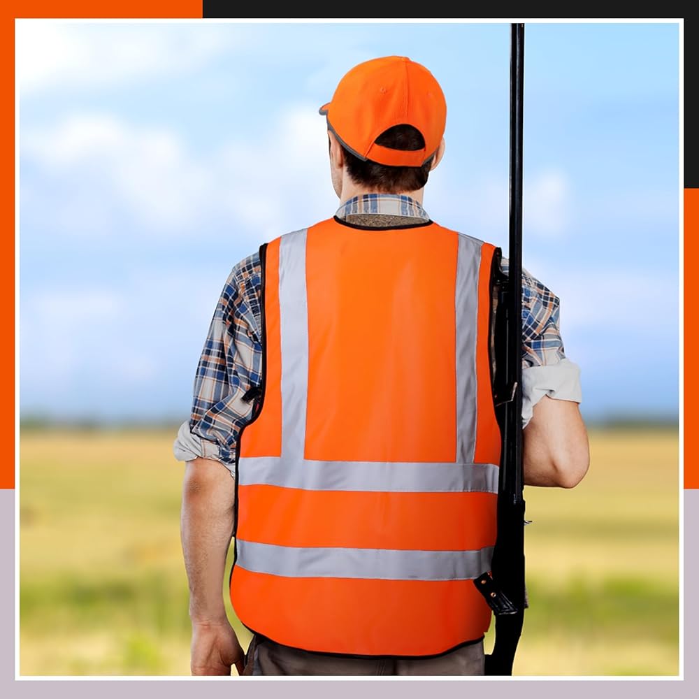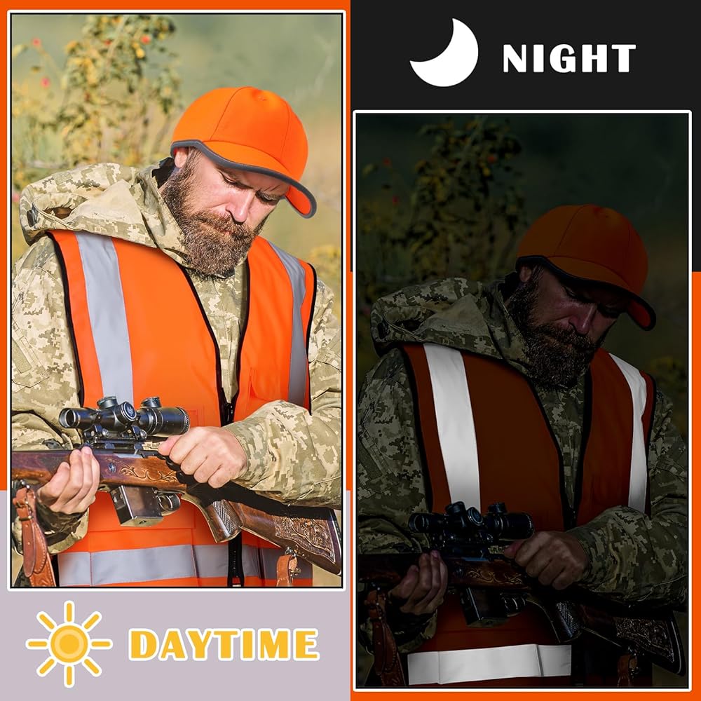 رؤية لطيفة: سترات الصيد الآمنة ذات الرؤية العالية والقبعات ذات الأشرطة العاكسة مثالية للصيد وركوب الدراجات والبناء والمشي لمسافات طويلة والمشي الليلي وغيرها من المواقف التي تتطلب حماية السلامة