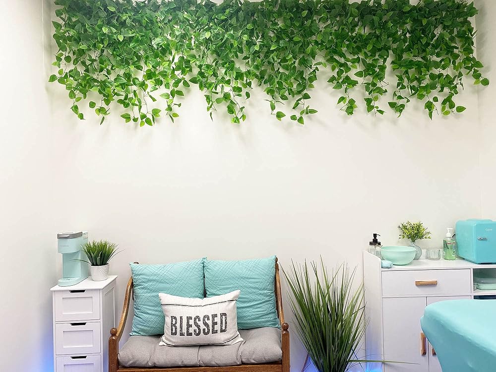 • 🌿 لا تحتاج إلى صيانة: أوراق الكرمة الصناعية المعلقة تبدو مثل النباتات الحقيقية المحفوظة، ولكنها لا تذبل أو تتلاشى أو تتلف بسهولة. لا ماء ولا حاجة للصيانة. أضف المناظر الطبيعية إلى الفناء أو الشرفة الخاصة بك إلى أجل غير مسمى على مدار العام.
