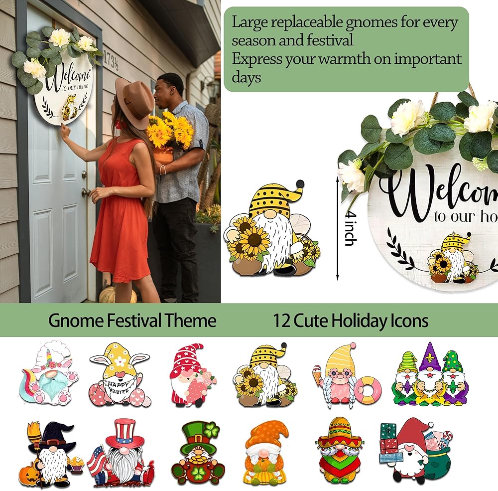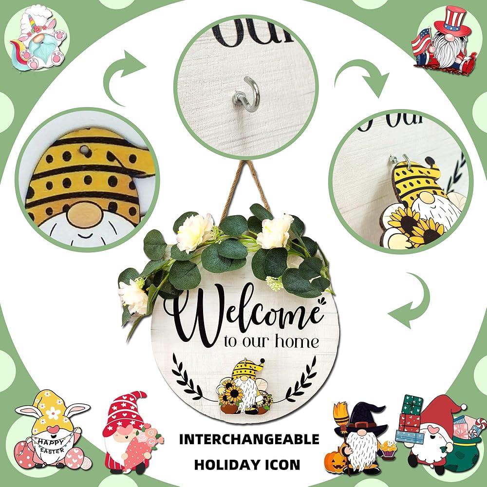 【تصميم جنوم موسمي قابل للتبديل】🌻 تتميز لافتة الترحيب بالمنزل بتصميمات جنوم موسمية قابلة للتبديل مثل عيد الحب، وعيد القديس باتريك، والكرنفال، والهالوين، والكريسماس، إلخ. يمكنك تزيين منزلك بعلامات لكل عطلة من العام.