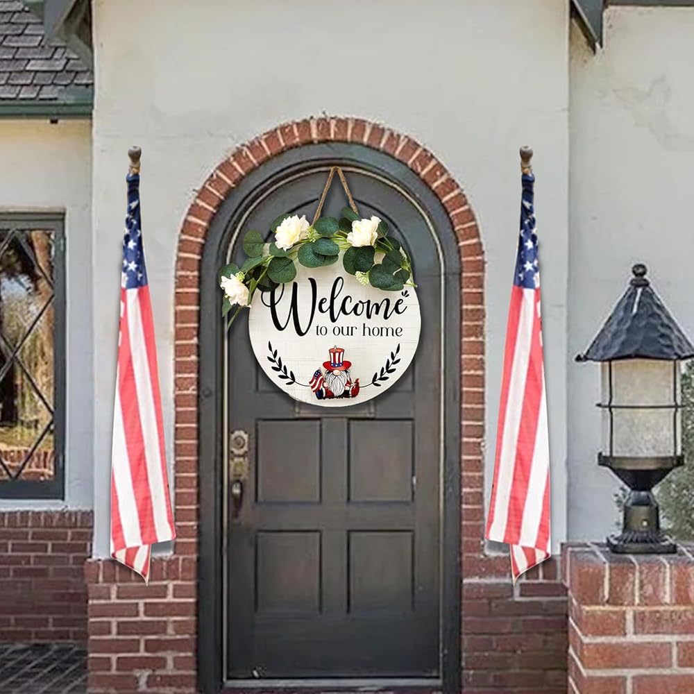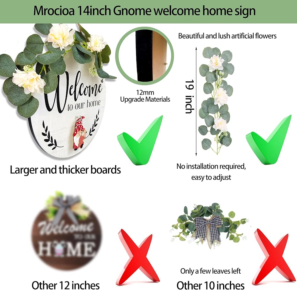【تشمل المنتجات】💘سوف تحصل على مجموعة لافتات الترحيب الموسمية، بما في ذلك لافتة باب خشبية مطبوعة عليها مرحبًا بكم في منزلنا، مجموعة إكليل الأوكالبتوس مع زهور بيضاء وتأتي مع 12 قطعة من زخارف القزم الموسمية القابلة للتبديل.