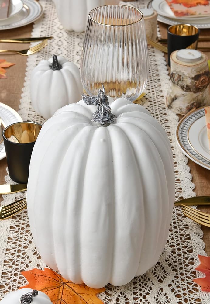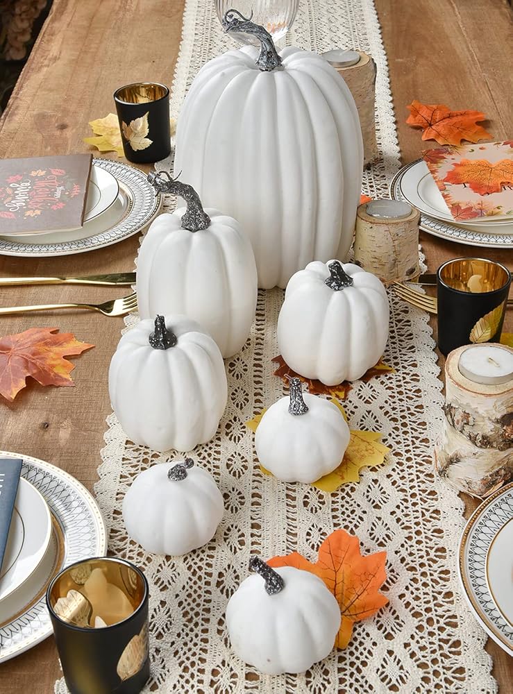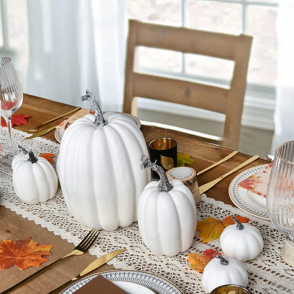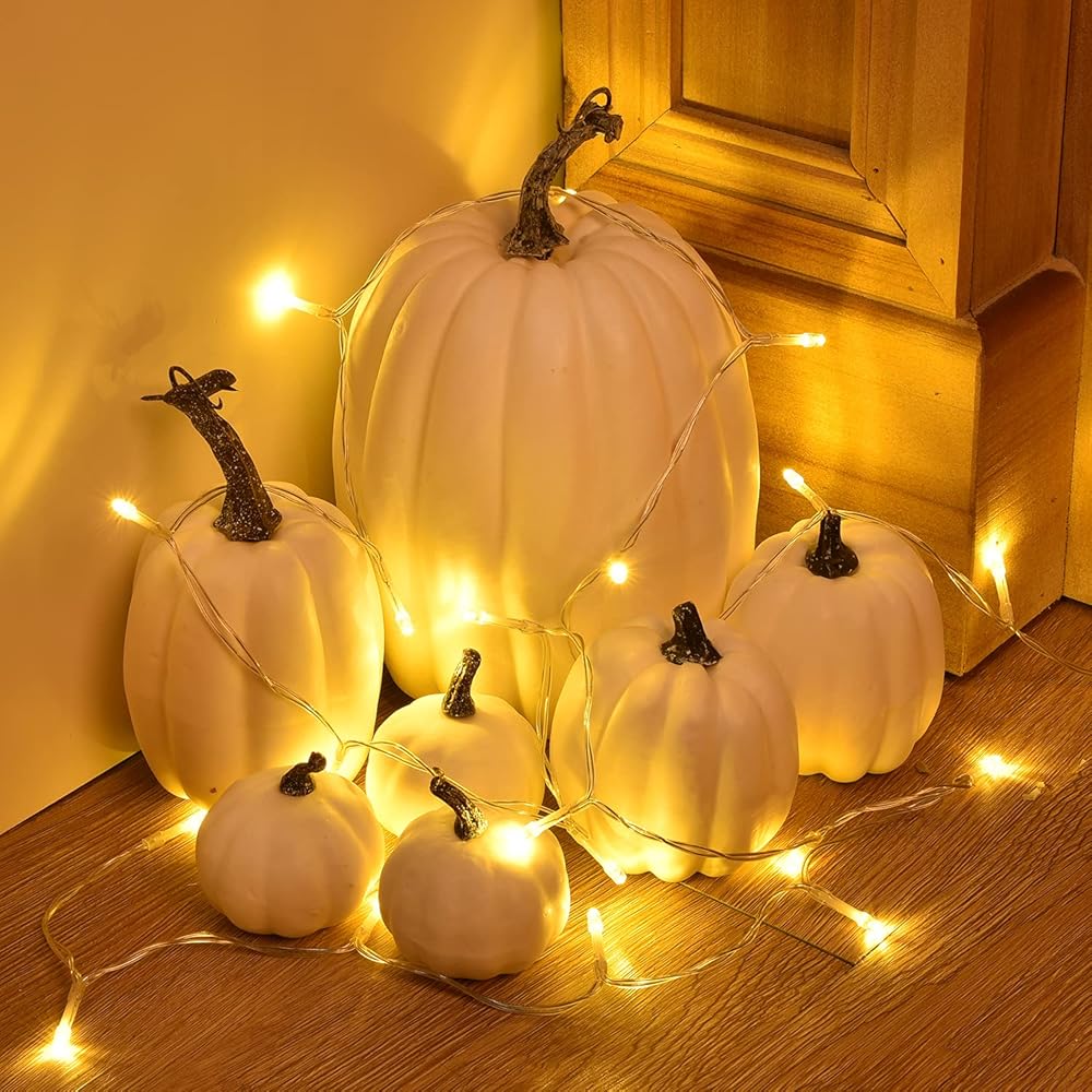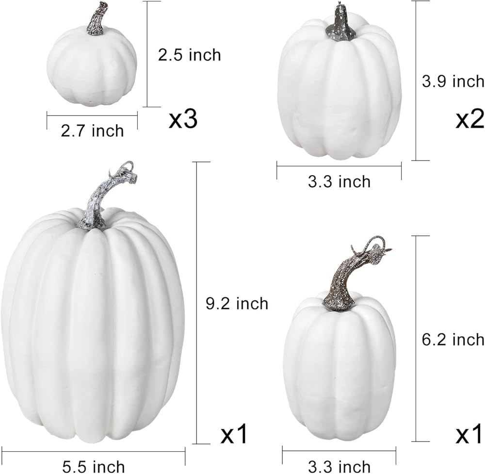 🎃️ 7 قطع من اليقطين الأبيض الصناعي بمقاسات مختلفة، جميعها معبأة في حقيبة. زين منزلك بهذا اليقطين الصناعي لخلق ديكور خريف دافئ هذا الموسم مع هذا اليقطين الصناعي.