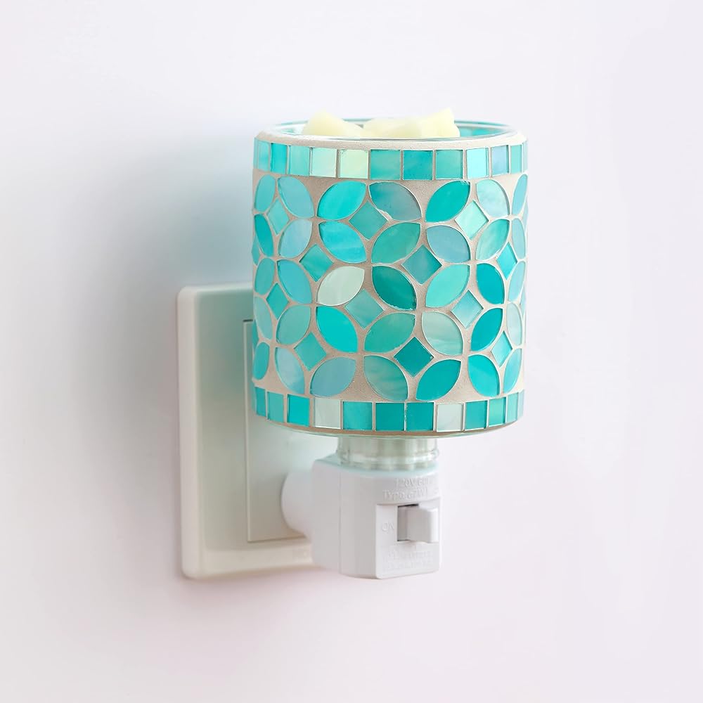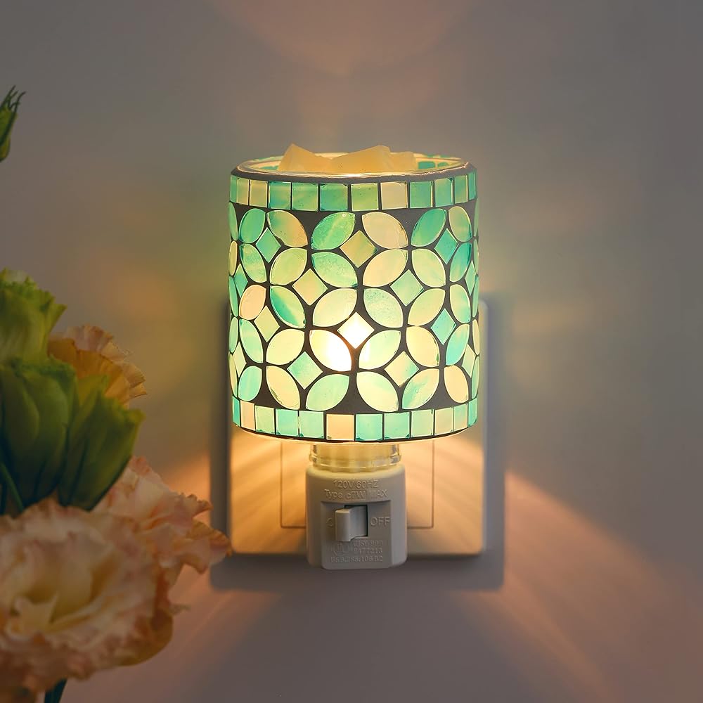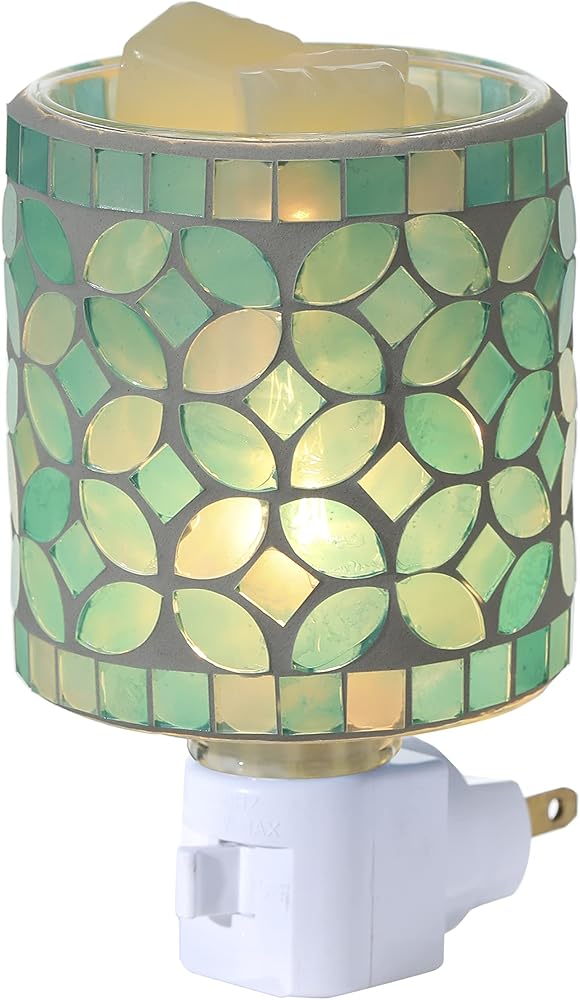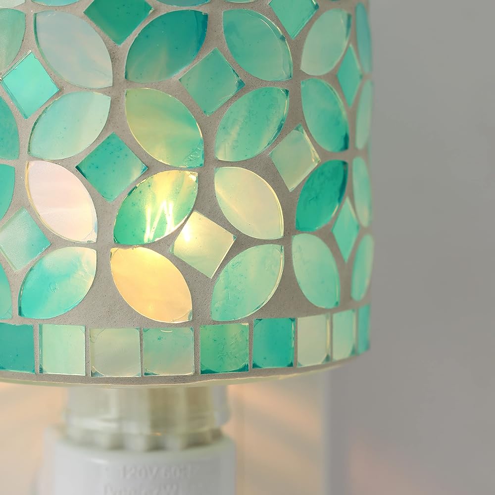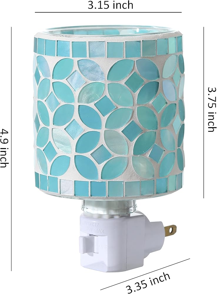 • 【Stylish Home Decor】Featured mosaic glass wax burner with teal leaf shape pattern makes it a luxurious and contemporary home décor. Can be used as an elegant night lamp producing a warm glow at your bedside, studio, gym or spa space.