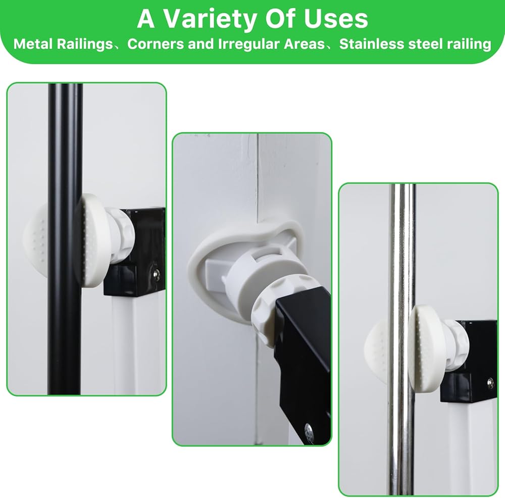 【محول درابزين بوابة الأطفال】 إنه مناسب جدًا للسور الدائرية المدعومة، والسور المعدنية، والدرابزين، وما إلى ذلك. المحول الخاص بنا مناسب أيضًا في الزوايا والمناطق غير المنتظمة في المنزل. يرجى ملاحظة أن محول حماية درابزين بوابة الدرج الخاص بنا لا يتضمن قضبان معدنية.