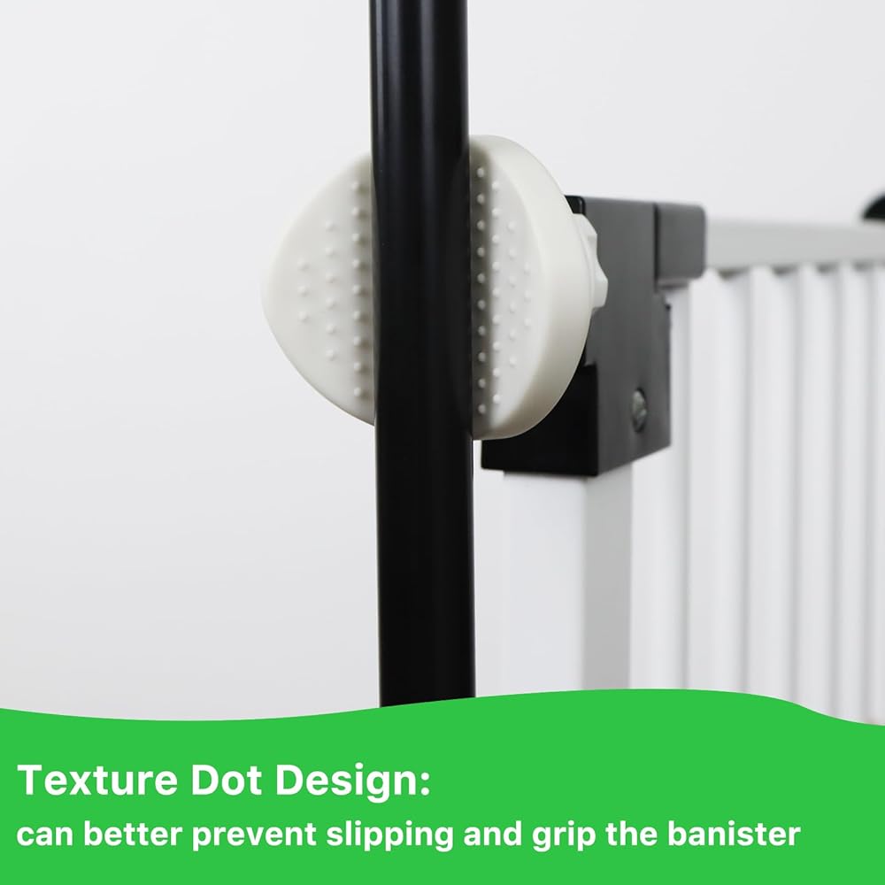 【تصميم جديد】 أضفنا نقاطًا نسيجية إلى الأجزاء البديلة لبوابة الأطفال لضمان قبضة أفضل على الدرابزين. تساعد ميزة التصميم هذه على منع الانزلاق، مما يضمن بقاء الدرابزين على الحائط وبوابة الكلاب الخاصة بالسلالم في مكانه بشكل آمن. توفر نقاط النسيج أيضًا مقاومة إضافية ضد تأثيرات الأطفال والكلاب والحيوانات الأليفة، مما يجعل بوابة السلم الخاصة بك أكثر متانة وموثوقية.