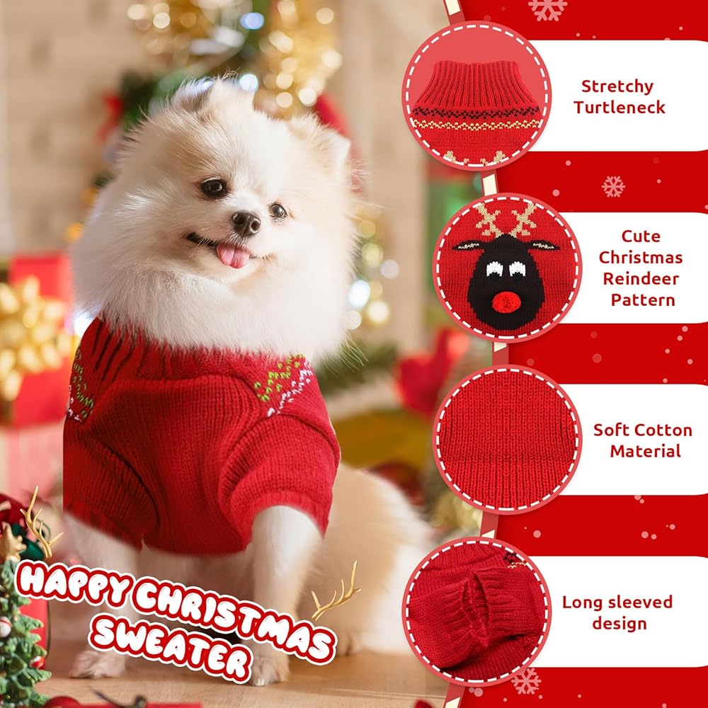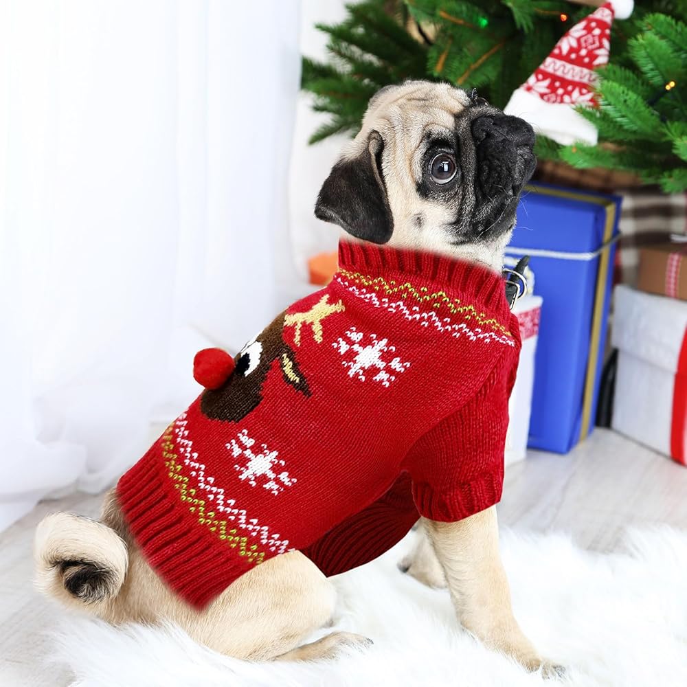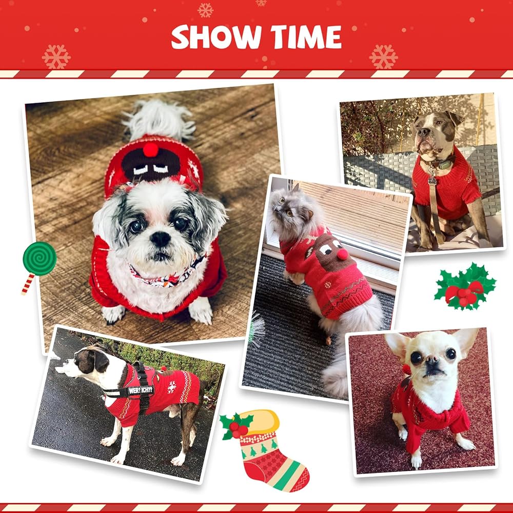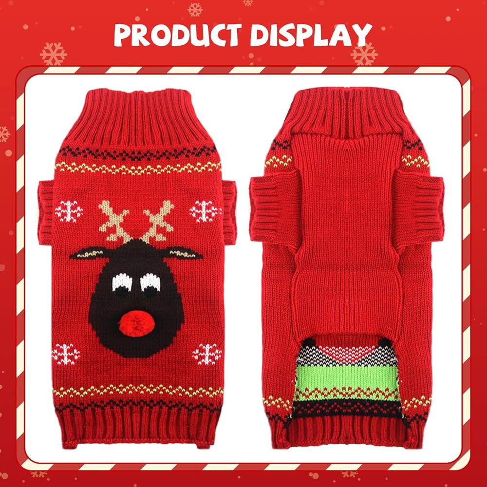 🎅【بلوفر محبوك أنيق ولطيف للكلاب】 - تتميز سترة الحيوانات الأليفة لعيد الميلاد بأنماط حياكة كلاسيكية رقيقة لأيل عيد الميلاد، وتلبس حيواناتك الأليفة بطرق عصرية وملفتة للنظر لجعلها متميزة في يوم عيد الميلاد.