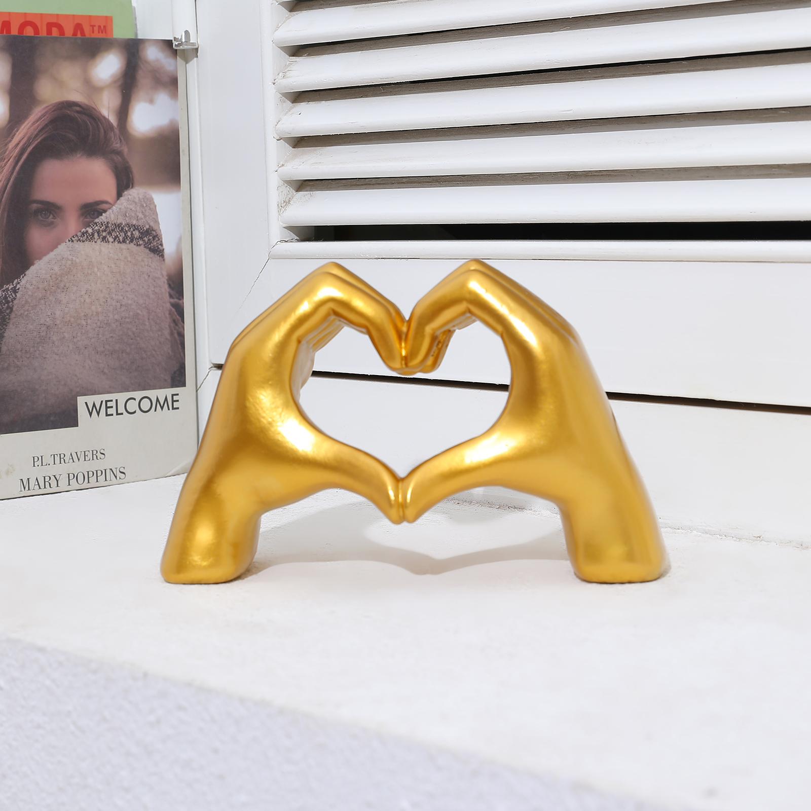 This beautiful sculpture can be used as a standalone piece or combined with other home decor accessories to create a personalized display. It's perfect for Tayler Swift fans who want to add a touch of her style to their room decor. The Gold Heart Hands Sculpture is also a thoughtful gift idea for loved ones or friends who appreciate unique and meaningful gifts.