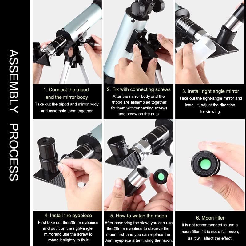 • 【recommend】Beginners are recommended to use the 20mm eyepiece at the beginning, and then switch to the 6mm eyepiece for better moon viewing effect after getting familiar with it.