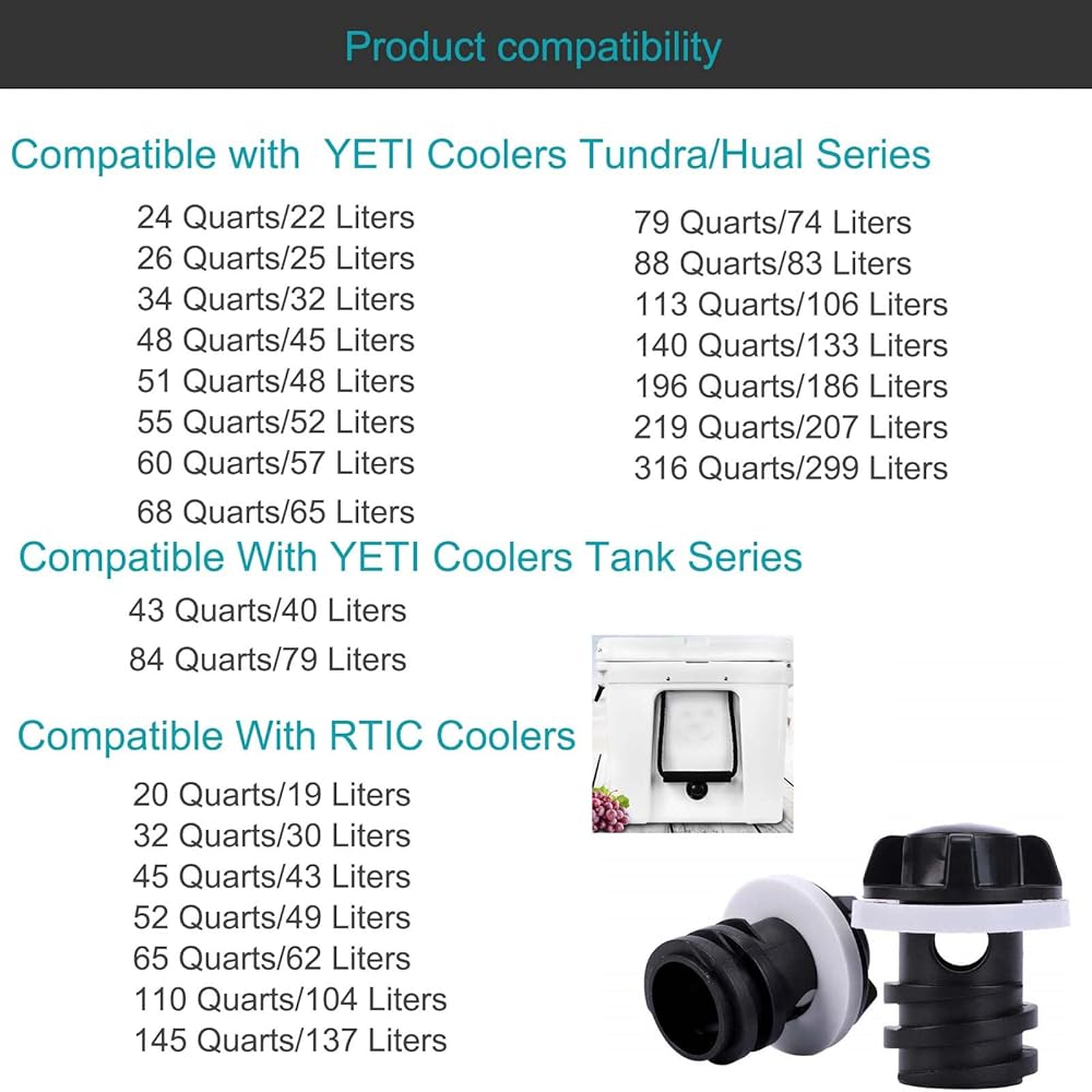 【Compatibility】Drain Plugs for Yeti Are An Ergonomically Improved Twist Drain Plug, It is very suitable for the drainage tasks of Yeti Roadie and Yeti Tundra for Yeti TANK or Rtic 20 45 65 110 cooler, and Yeti 20 35 45 55 65 cooler, Replace Part (This is Non-Original Aftermarket Parts)