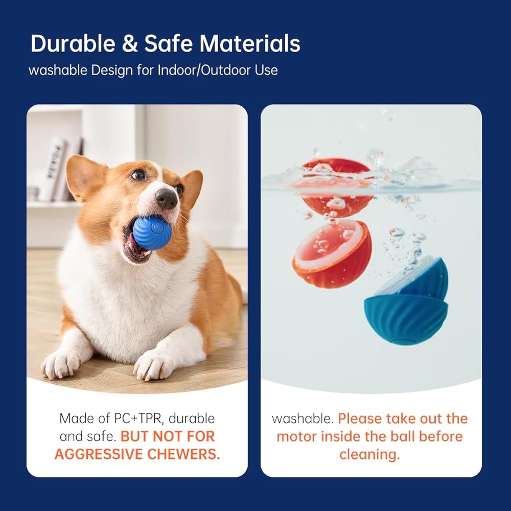 ألعاب الكلاب الكهربائية الذكية: مع مستشعر ذكي مدمج لتجنب العوائق، تعمل الكرة النطاطة في اتجاهات عشوائية وتتحرك بعيدًا عندما تصطدم بجدار أو أثاث أو عوائق أخرى، مما يبقي كلبك متحمسًا من خلال البقاء غير متوقع. يمكن أن تعمل الكرة النطاطة على أي نوع من الأرضيات الصلبة مثل الرخام والخشب والأرضيات وما إلى ذلك. (ملاحظة: لا يُنصح باستخدامها مع السجاد الوبر والسجاد؛ غير مناسبة للمضغ الثقيل!).