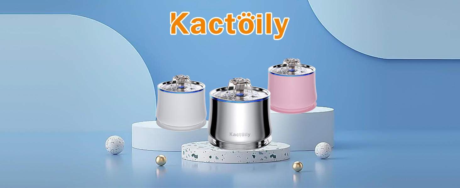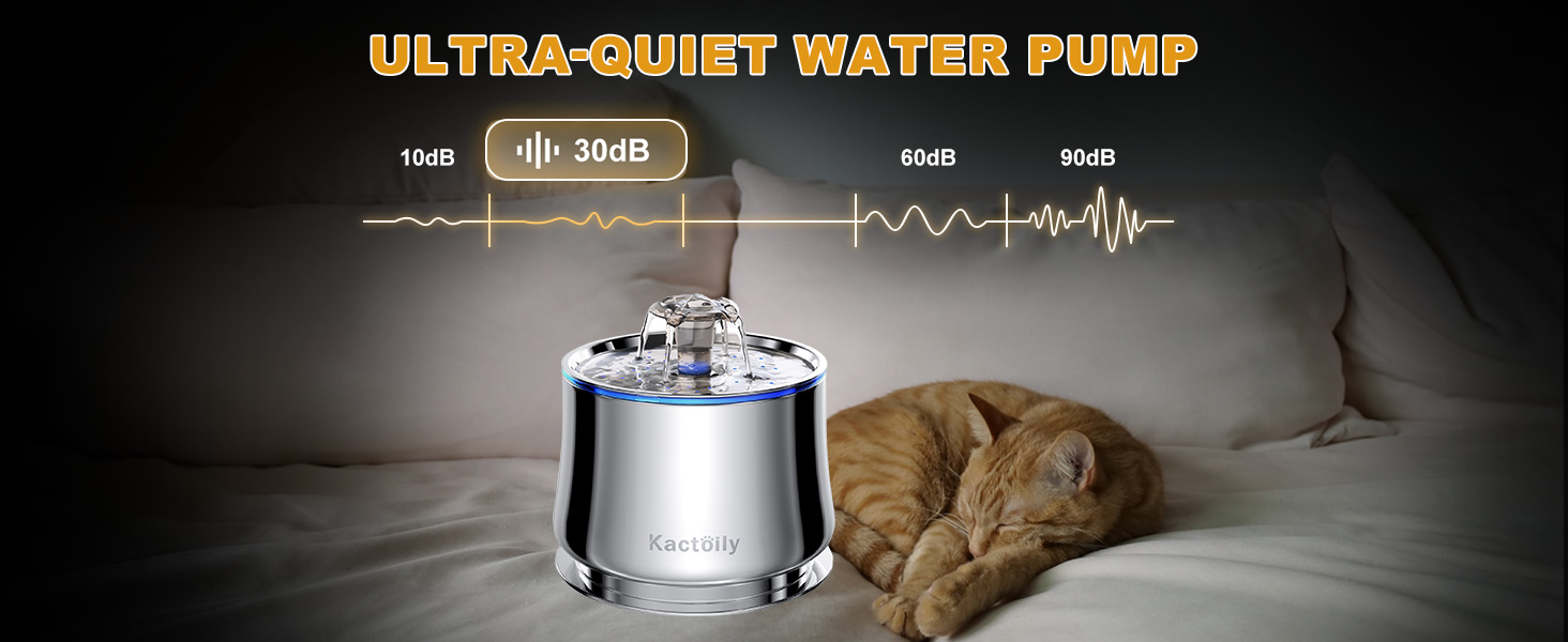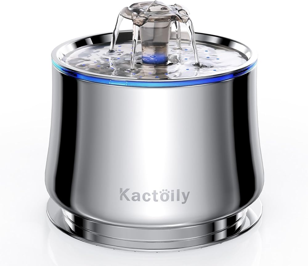 نافورة مياه للقطط من الفولاذ المقاوم للصدأ من كاكتويلي، نافورة مياه أوتوماتيكية للحيوانات الأليفة سعة 2.5 لتر/84 أونصة، مضخة فائقة الهدوء و2 مرشحات، نافورة للقطط للشرب مع ضوء LED، خالية من مادة BPA