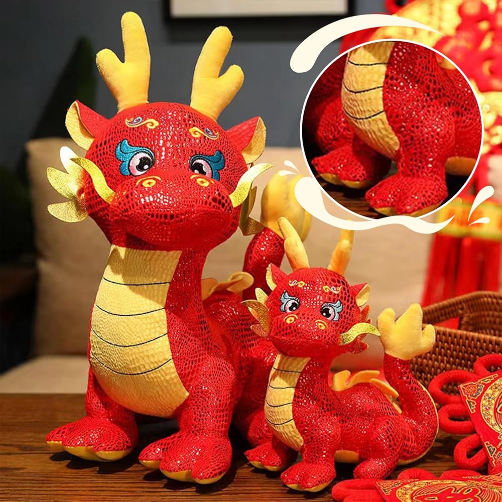 Acewen 1 قطعة التنين التميمة 2024 التنين الصيني السنة الجديدة تمثال زخرفة أفخم للمنزل مكتب متجر مطعم الطاولة الديكورات زودياك نعمة هدية تذكارية، 24 سم / 9.4 بوصة