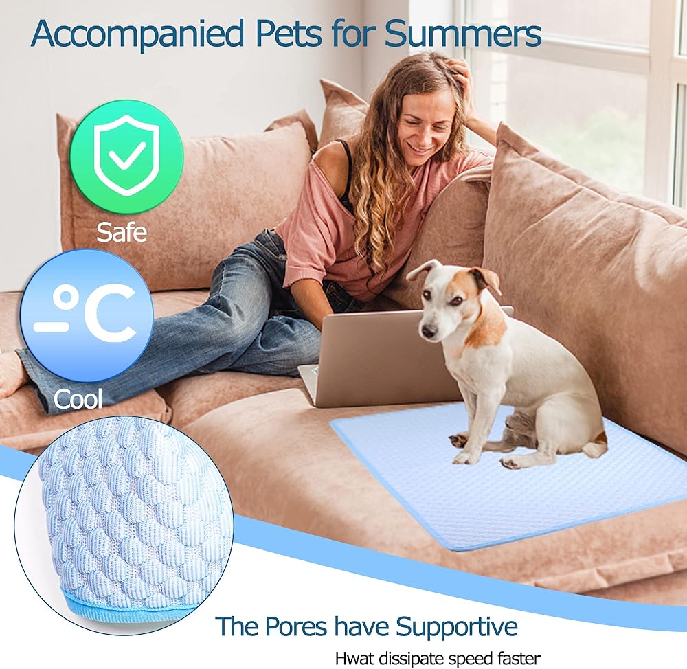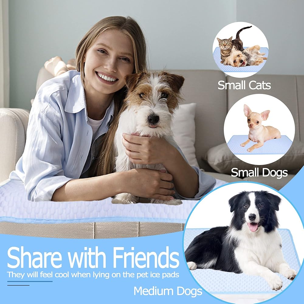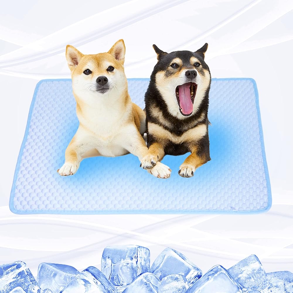 سجادة التبريد Happy Dog Love: وسادة التبريد للكلاب مصنوعة من الحرير الجليدي والألياف النباتية، والتي تتميز بوظيفة تبديد الحرارة سريعًا وجيد التهوية. قل وداعًا للجفاف والحرارة، مما يسمح لكلبنا بالتدحرج والنوم بثقة على بساط التبريد!