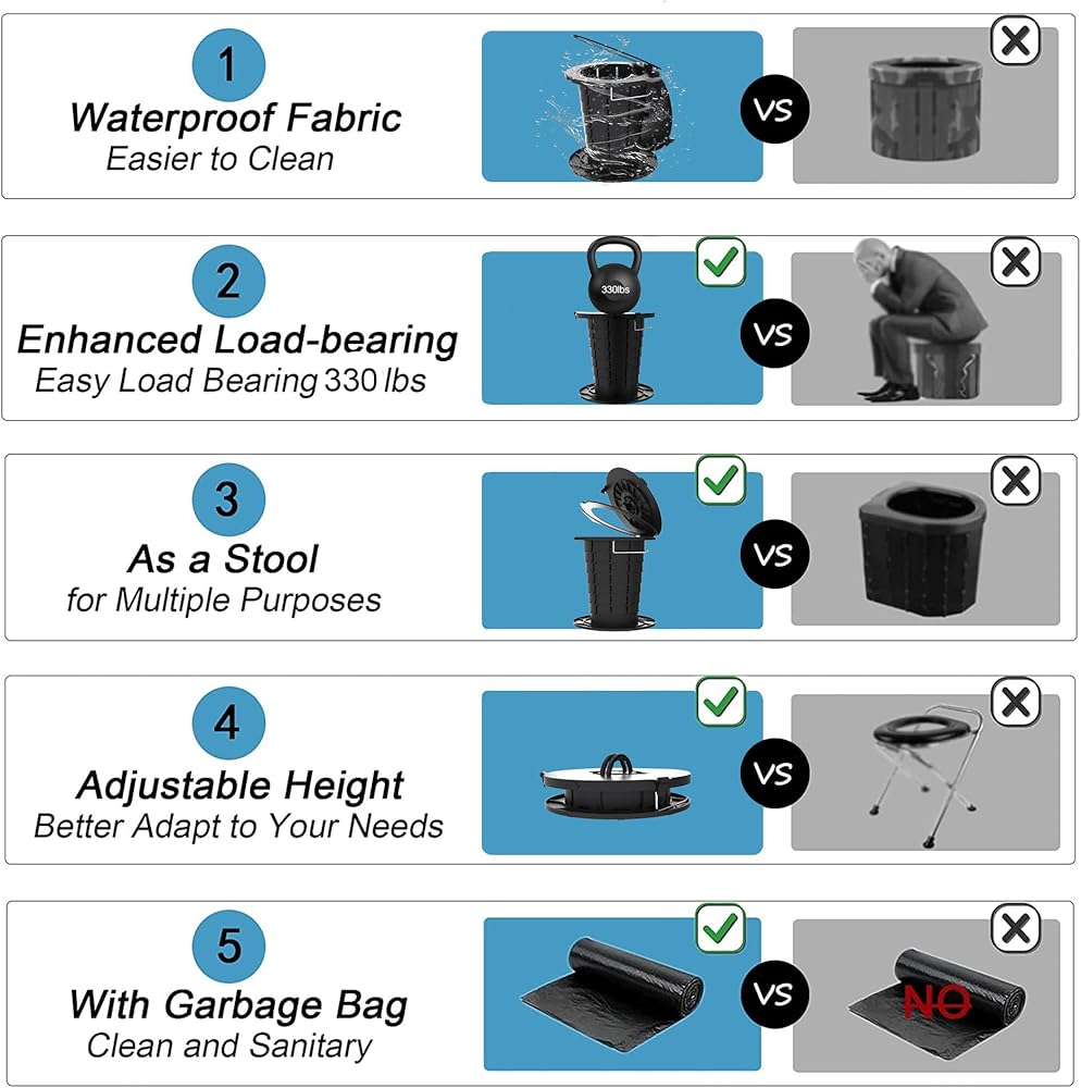 سهل الحمل: يمكن أخذ المرحاض المحمول معك أينما كنت مسافرًا، تصميم قابل للطي لسهولة التخزين.