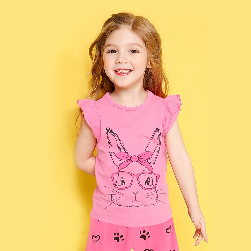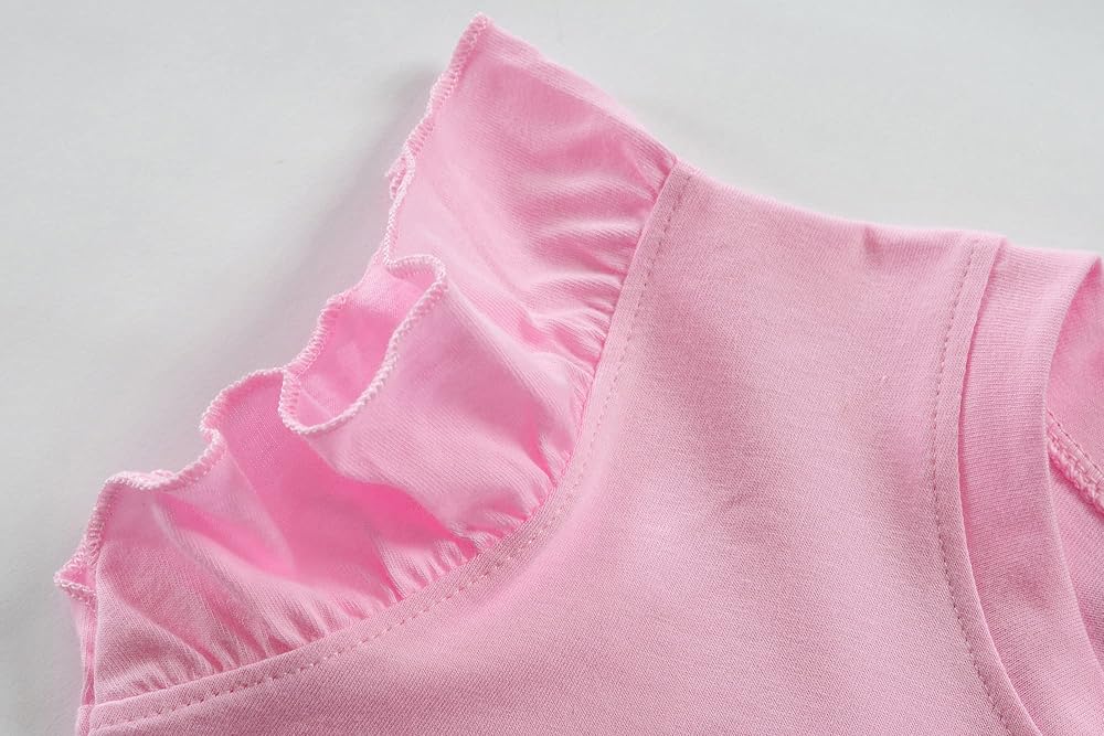 قطن عالي الجودة: تي شيرتات عصرية بأكمام مكشكشة لطيفة للفتيات، ناعمة ومسامية ومريحة لحماية بشرة الطفل الحساسة