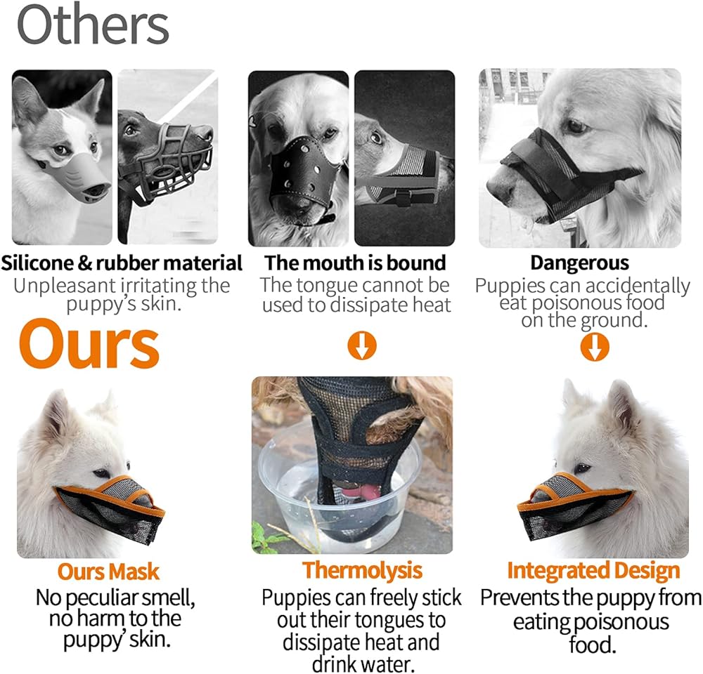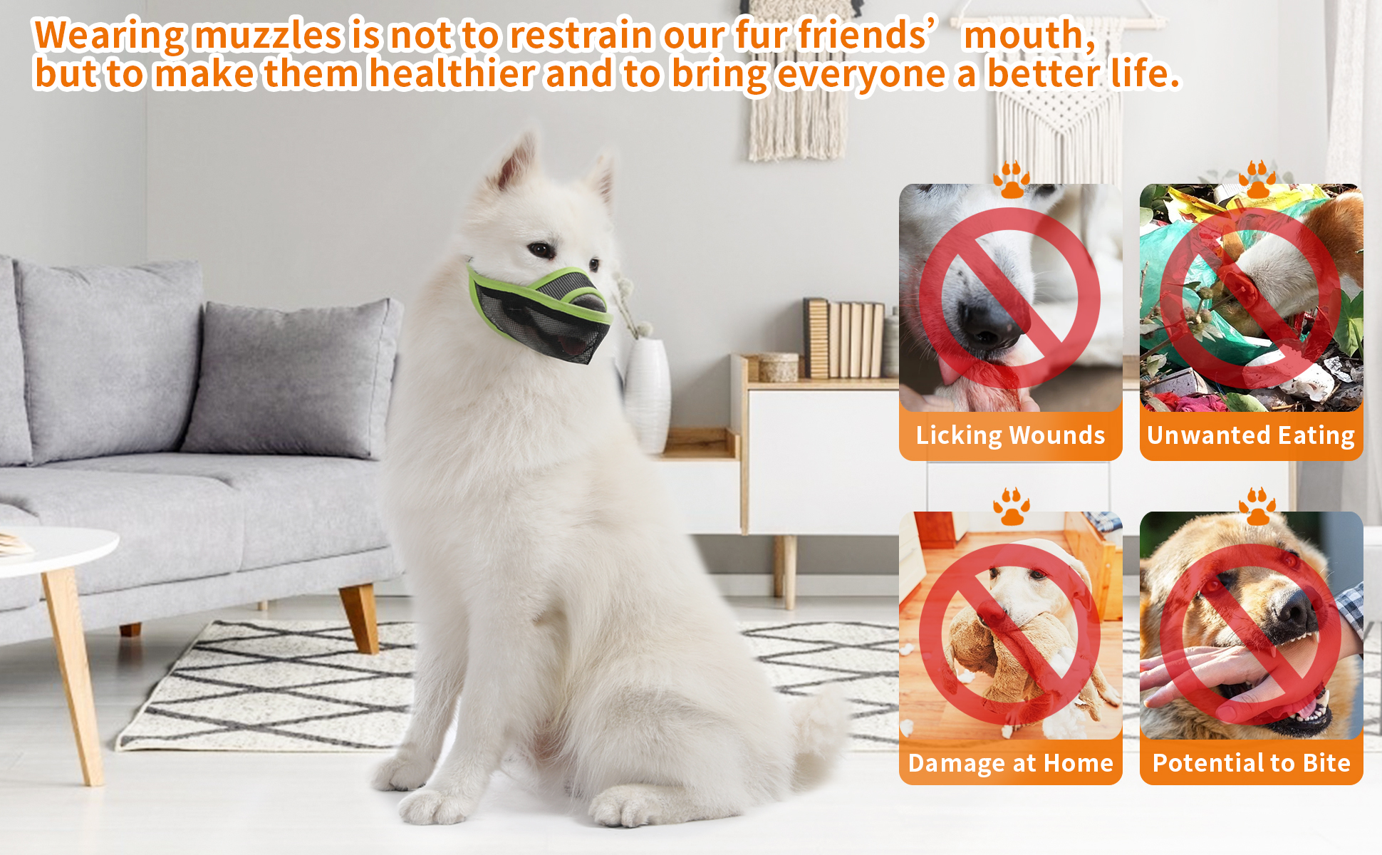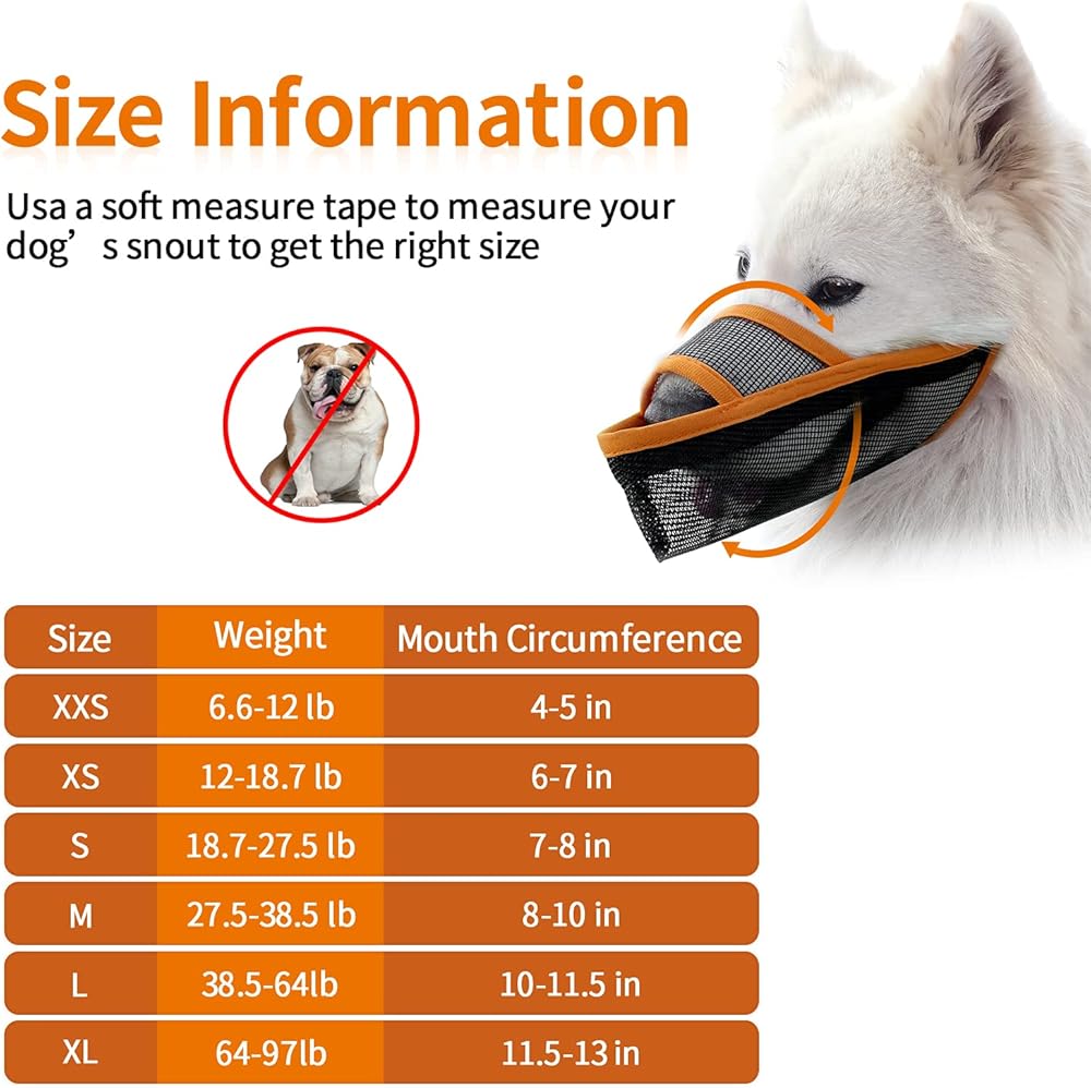 كمامة للكلاب الصغيرة والمتوسطة الحجم - يرجى الرجوع إلى الرسم البياني وتعليمات القياس عند اختيار الحجم. إذا واجهتك أي صعوبات في العثور على المقاس المناسب، فسنقدم لك دعم العملاء وسنعمل جاهدين لحل مشكلتك. إذا لم تكن راضيًا تمامًا عن كمامة الكلب، فإننا نضمن استبدالها مجانًا أو استرداد أموالك بالكامل.