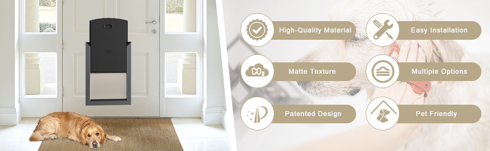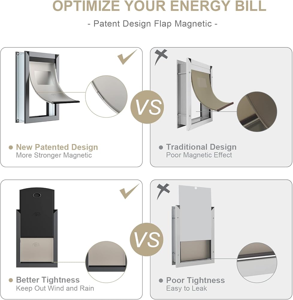 【متين وموفر للطاقة】يستخدم باب الكلب سبائك الألومنيوم للطيران لجعل المنتج أكثر صلابة. يوفر الغطاء والزجاج الأمامي مقاومة للعوامل الجوية وكفاءة في استخدام الطاقة، ويساعدان على الحماية من الطقس القاسي وتيارات الهواء.