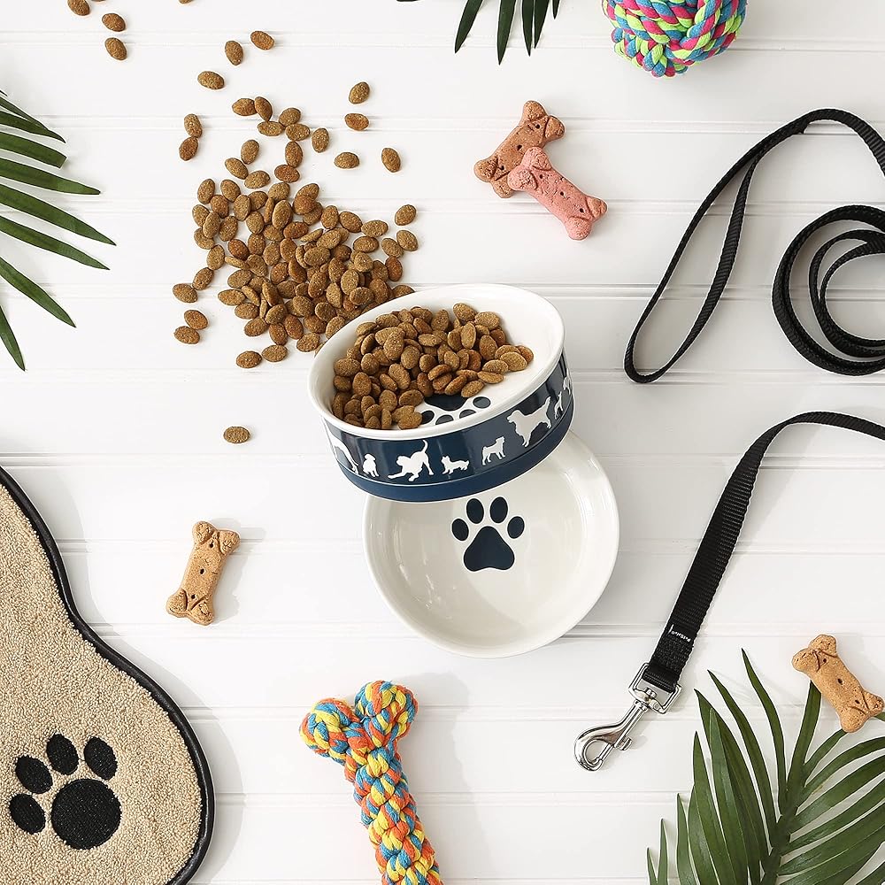 FULL DINNER SET: Set of 2 medium pet bowls, each measures 6 x 2" (D x H) and holds up to 1.5 cups, suitable for medium to large dogs; California Prop 65 compliant and FDA food safe