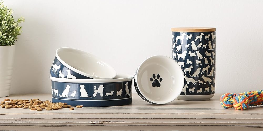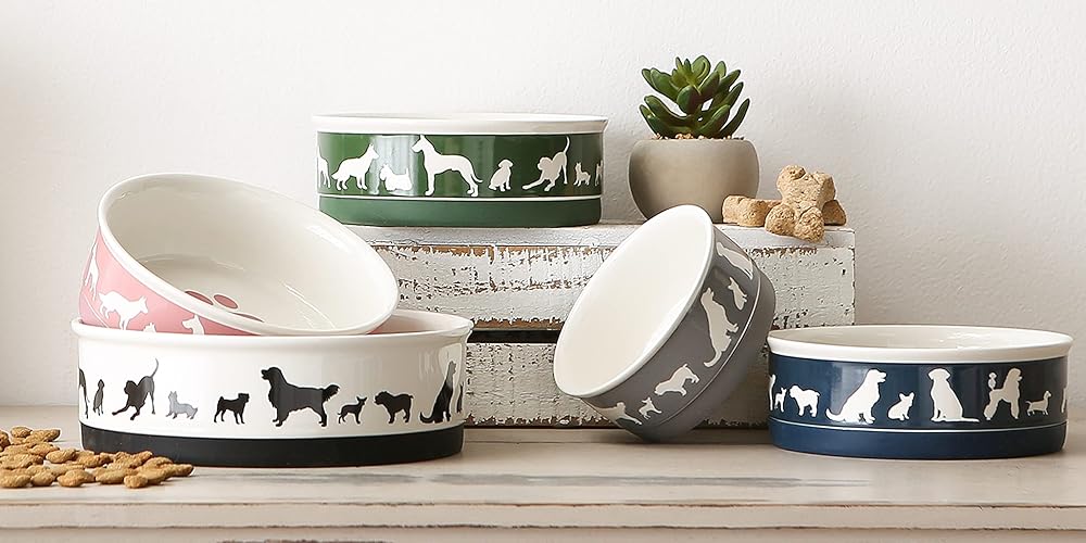 DURABLE MATERIAL & EASY TO CLEAN: Pet bowl is made of porcelain ceramic with a silicone ring to keep from sliding on the floor; Conveniently dishwasher and microwave safe
