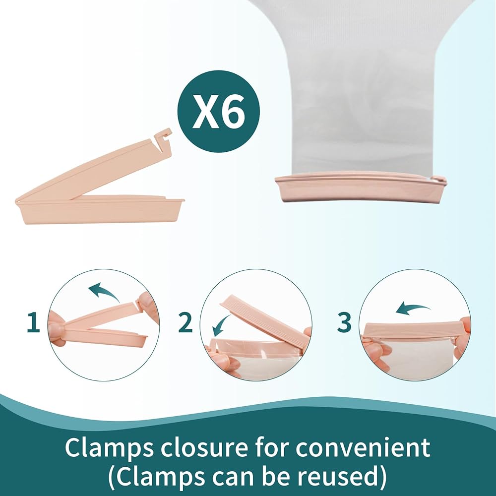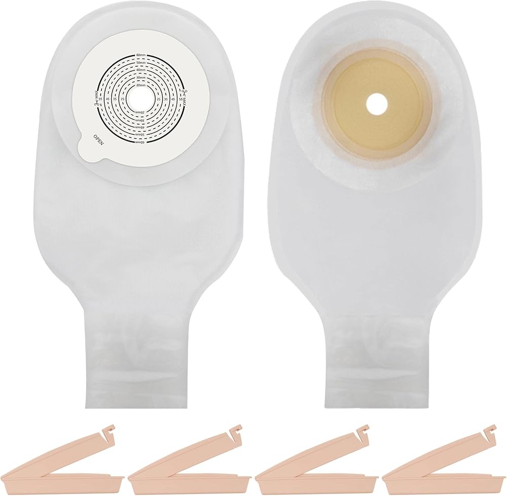 The colostomy pouch is easy to apply with clips Closure providing security you can feel as the plastic fasteners lock into place, easy to empty and irrigate.