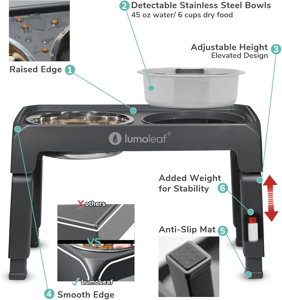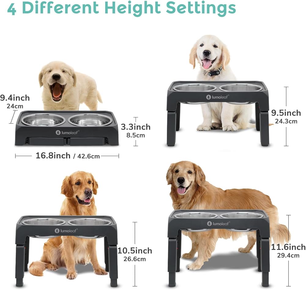 💖ارتفاع قابل للتعديل - يوفر حامل وعاء الكلاب المرتفع Lumoleaf أربعة مستويات ارتفاع قابلة للتعديل مناسبة للكلاب في جميع مراحل النمو، من الجرو إلى الكبار، مما يجعله خيارًا متعدد الاستخدامات لأصحاب الحيوانات الأليفة.