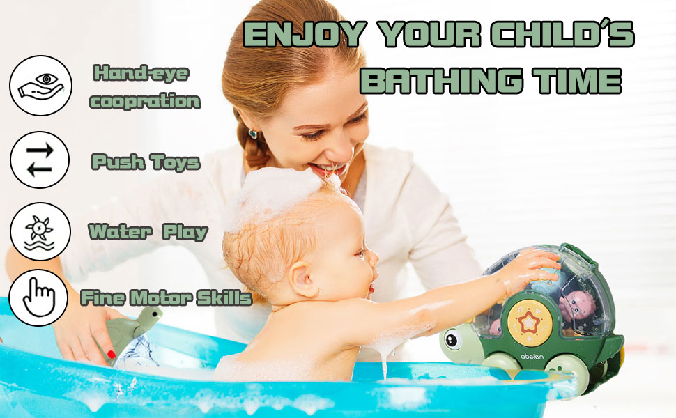 2 IN 1 Car Game - The turtle bathtub water toys not only work well in the bathroom but also work well on the ground! As a toy car, the baby can push the turtle car to move forward and follows it to run. it can exercise a baby's crawling ability. also pressing the middle button will make a "bi bi bi" crisp sound. so fun for kids.